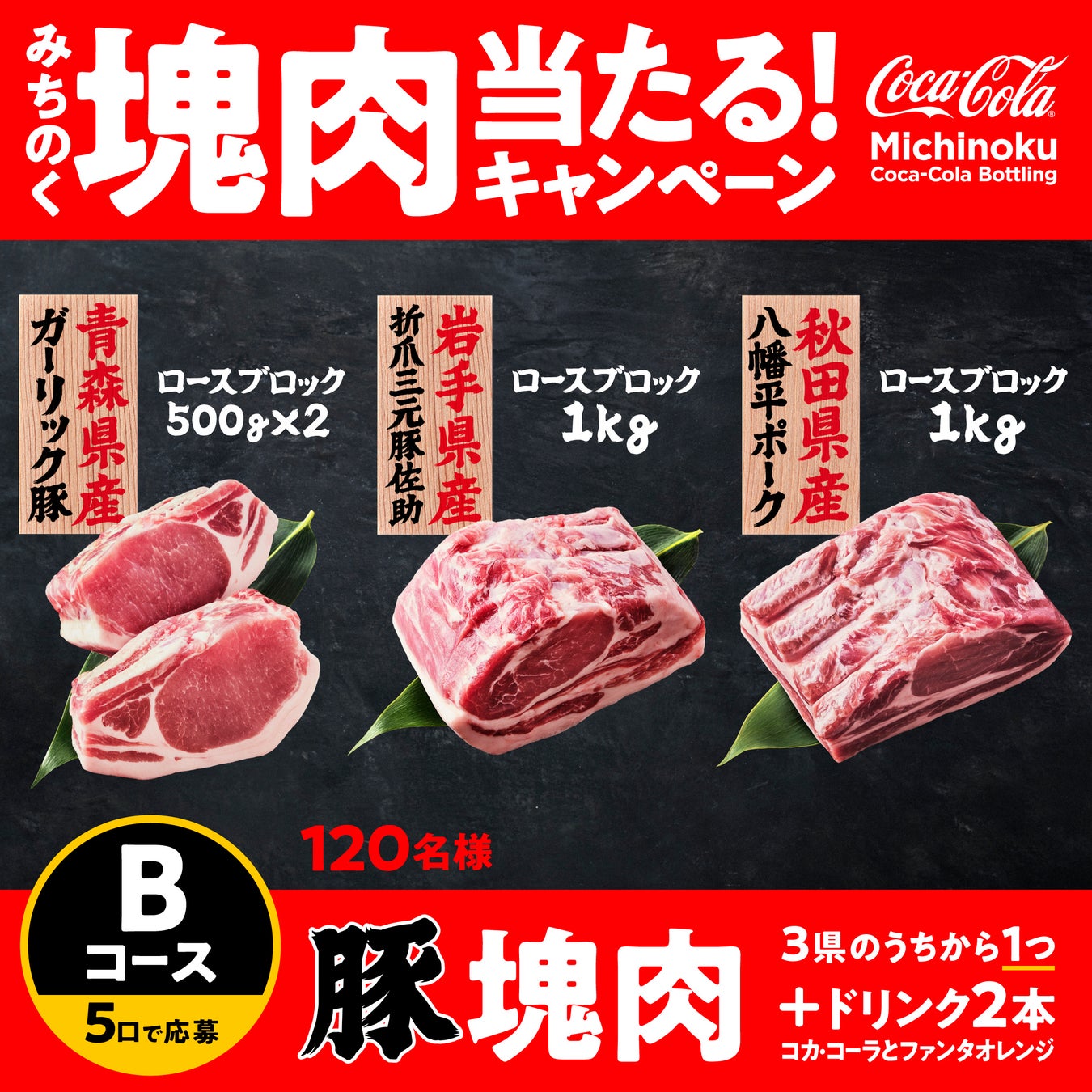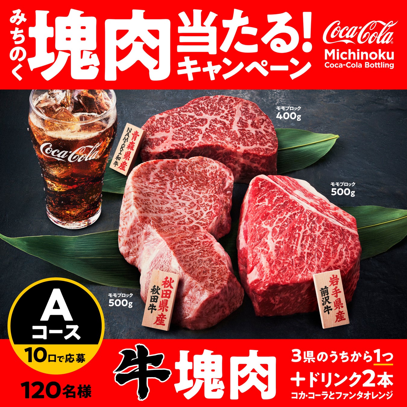 みちのくコカ・コーラボトリング株式会社(本社: 岩手県盛岡市、代表取締役社長: 谷村広和、以下「当社」)は、1月27日(月)から3月9日(日)まで、DISCOVER地元「みちのく塊肉当たる!」キャンペーンを、岩手県・秋田県・青森県のスーパーマーケット、自動販売機等で実施いたします。