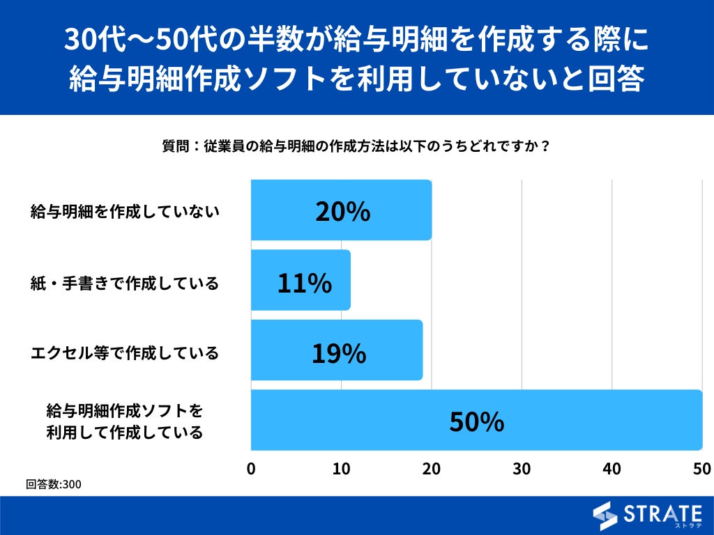 経営者・役員に聞いた「給与明細の作成は専門ソフトを利用中」の回答は50%、「手書きでの給与明細作成」は11%【給与明細作成に関するアンケート】