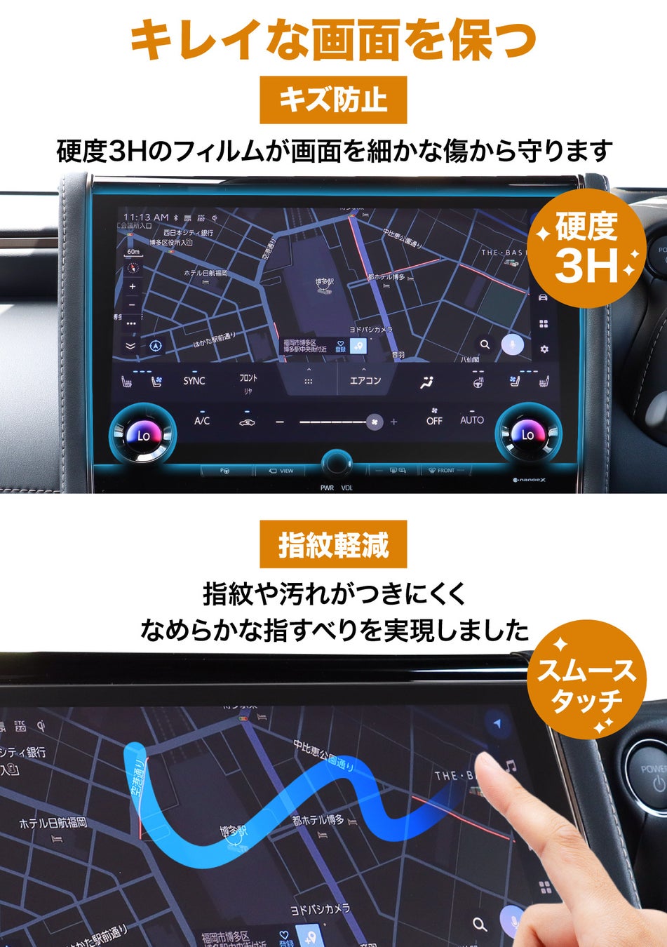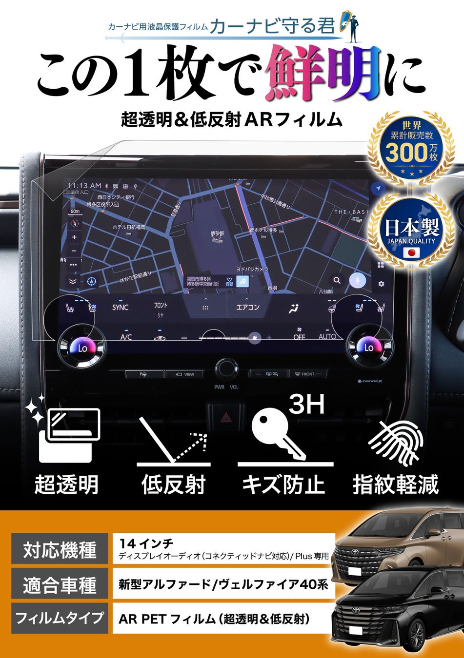新型 アルファード / ヴェルファイア 40系の14インチカーナビ画面を傷や指紋から守る便利グッズ「カーナビ守る君 保護フィルム」内装カスタムにおすすめのアクセサリー。納車前の準備に
