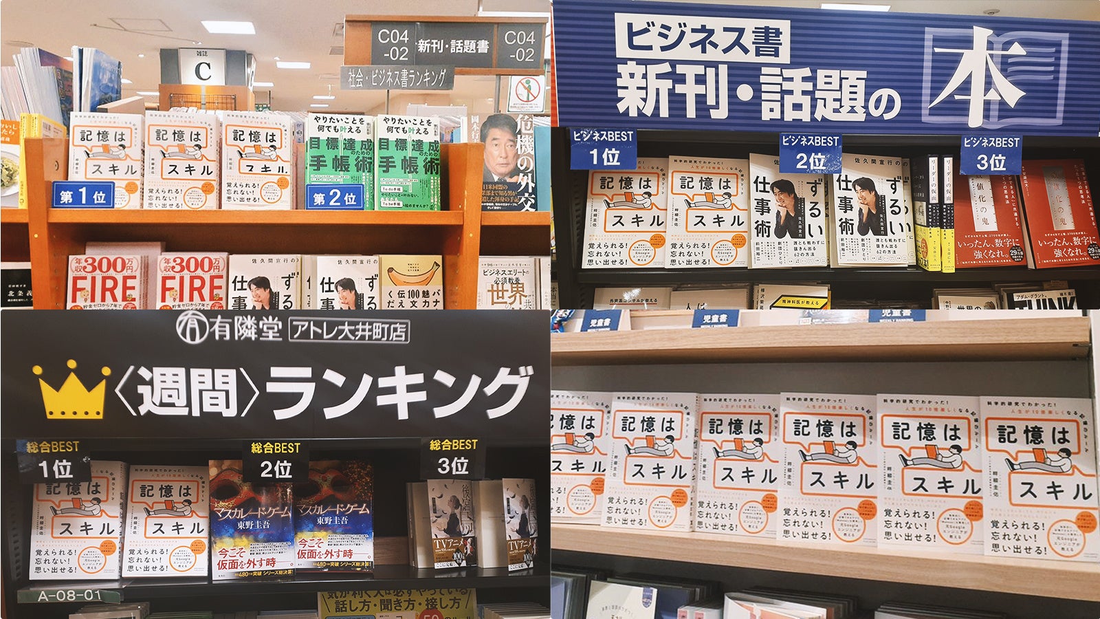 書店8店舗で週間売上1位!『記憶はスキル』が首都圏の書店で、総合・ビジネス書ランキングトップに。