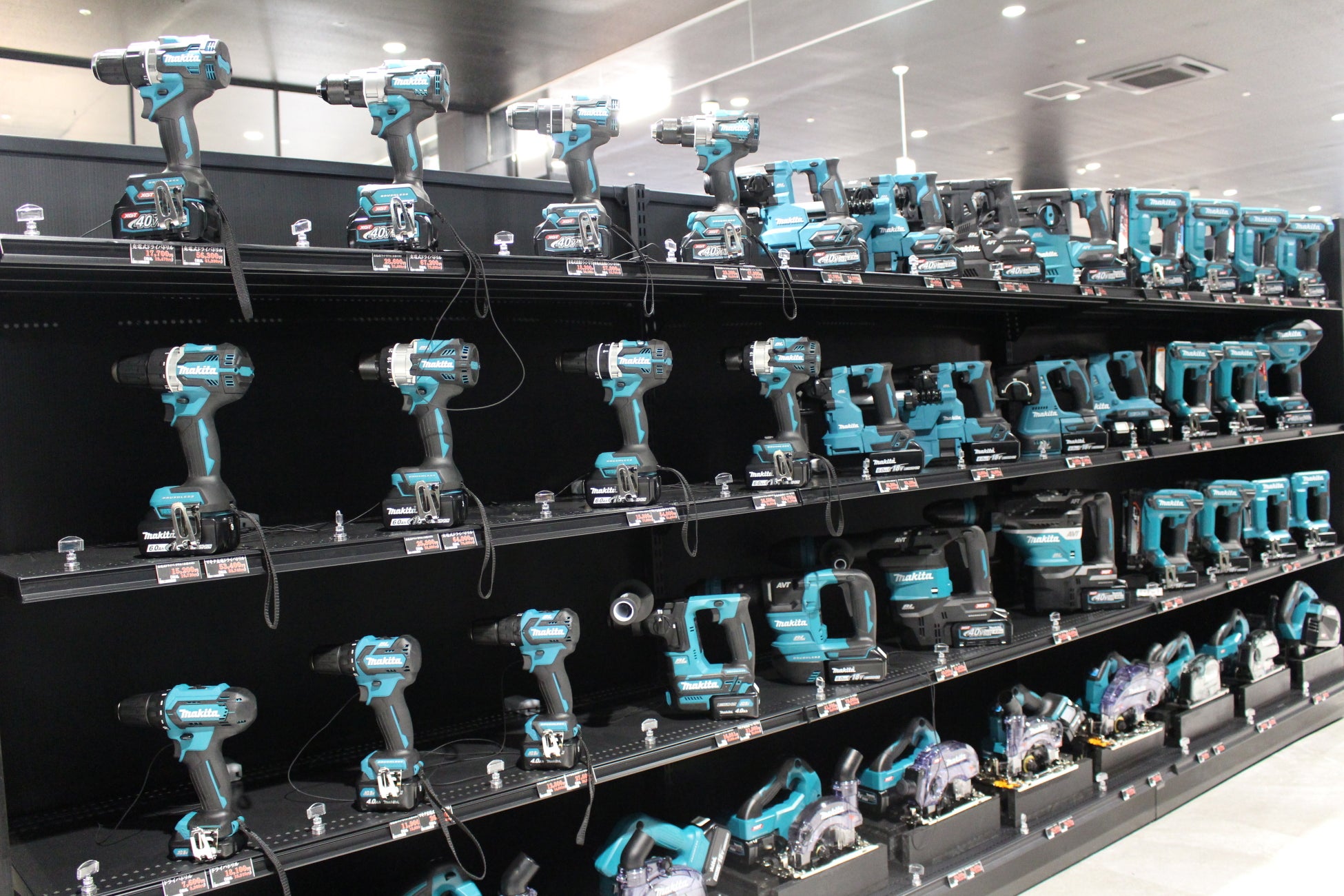 工具売場では「HiKOKI」「makita」を中心に、最新の電動工具を幅広く取り扱います。金物売場では、機械釘やビス関連の用途別ラインナップとバラ売り販売を充実させ、現場作業中に発生する不足分の購入から、まとめ買いにも対応いたします。