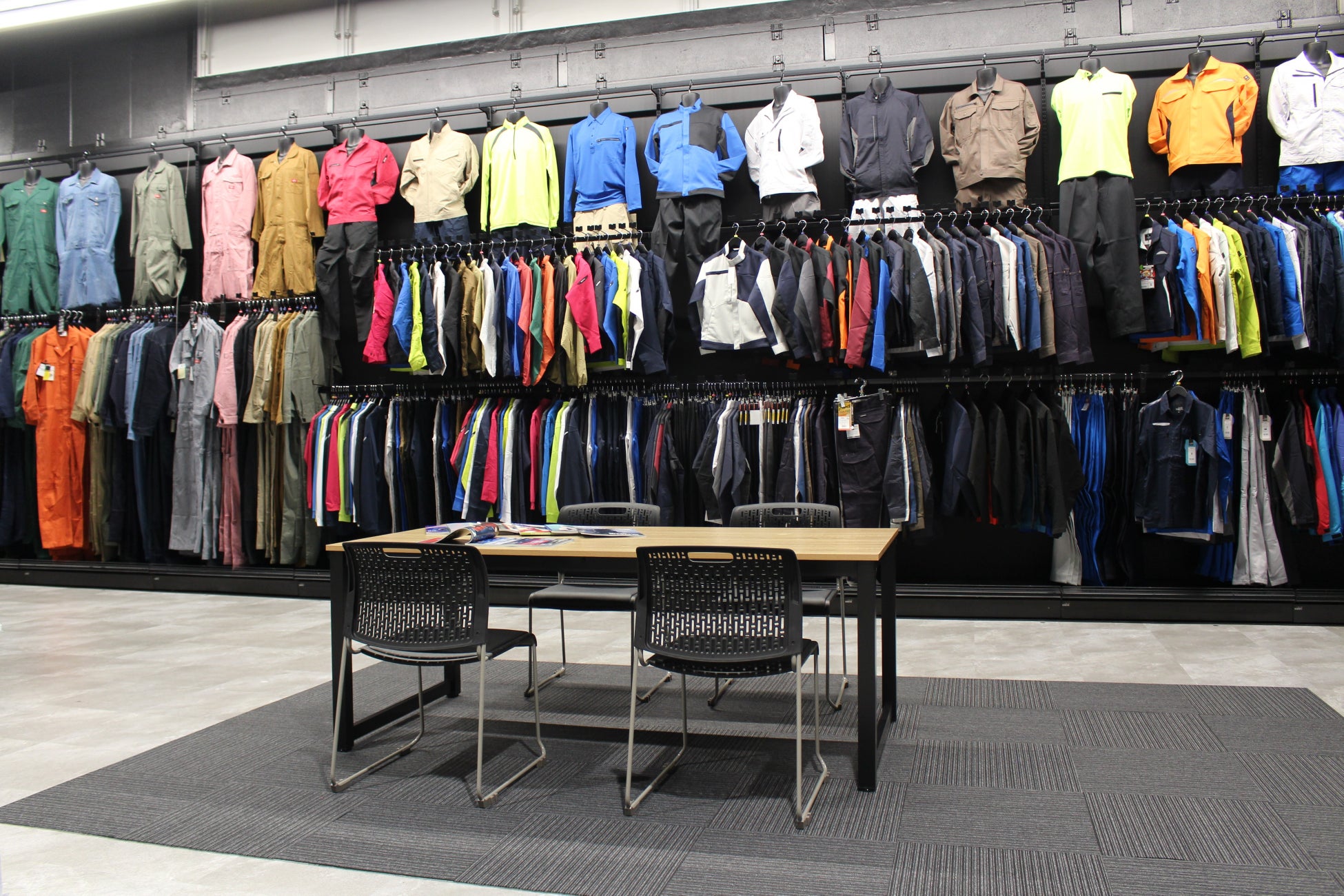 ワーク用品売場では、バートル、寅壱、I'z フロンティア、プーマ、TS DESIGN、Dickiesなど人気のブランド作業服や、アシックス、ミズノ、ニューバランスなど各種ブランド安全靴を取り揃えます。さらに、作業服の刺繍サービスを実施しており、社名や名入れはもちろん、企業ロゴやマークの刺繍にもその場で対応いたします。また、企業様向けユニフォームのラインアップを強化し、カジュアルな作業服とは異なるデザイン性の高いワークウェアブランドを豊富に展示いたします。専用の受付テーブルを設置し、売場の展示サンプルやカタログをご覧いただきながら、ご希望のカラーやサイズをゆっくりお選びいただけます。