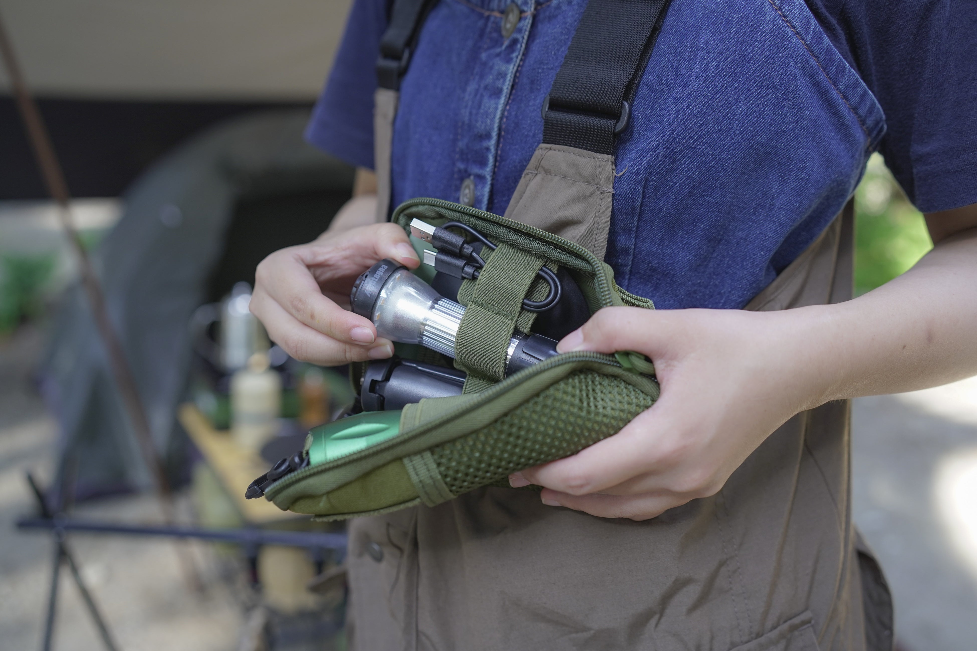 特徴:コンパクトサイズながら収納力が抜群!ベルトループが付いているので、ヒップバッグやサブバッグとしても使用できます。撥水仕様で急な雨でも水を弾いて安心、キャンプ・登山・サイクリング・ランニングなど多用途に使えて便利。ミリタリー調の色合いでキャンプギアとも馴染みやすく、デザイン性と機能性を備えたアイテムです。