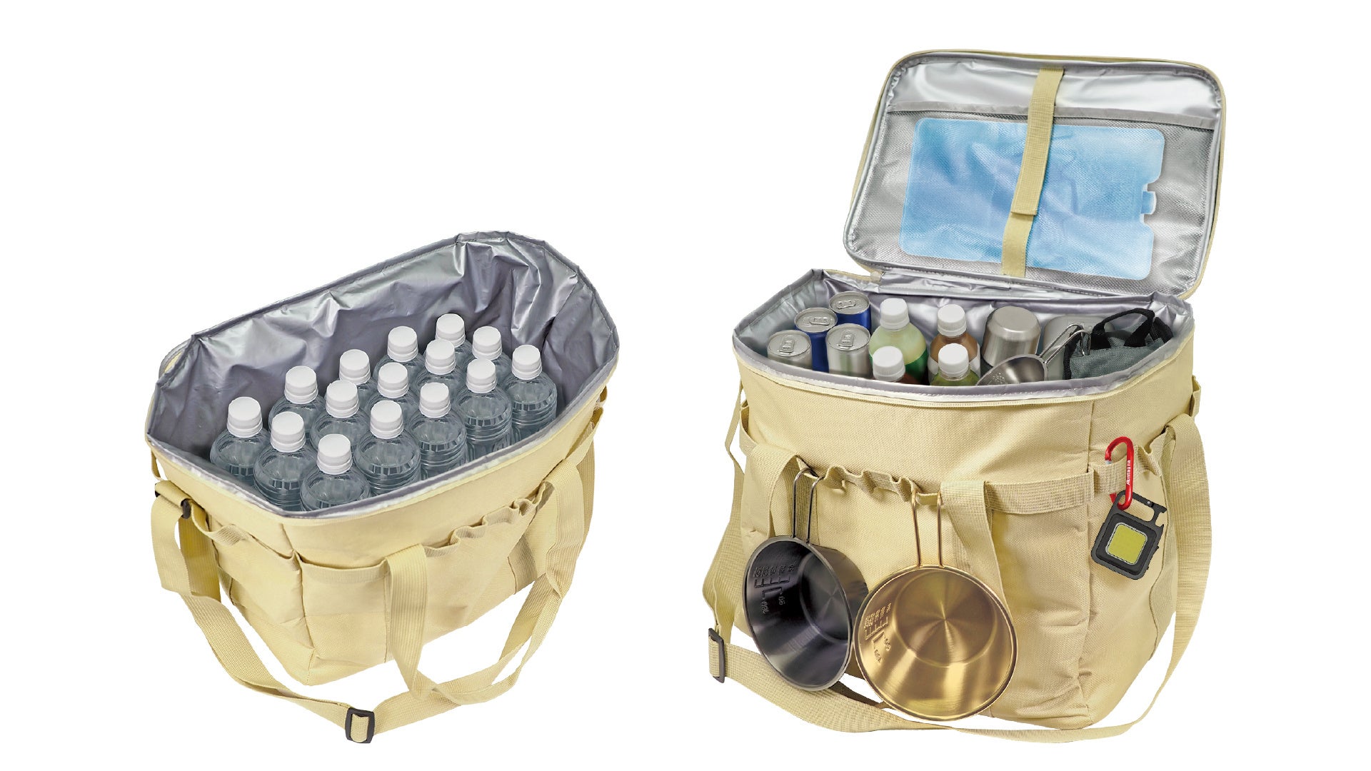 特徴:15L容量でたっぷり収納できる保冷・保温の兼用バッグ。500mlのペットボトルが最大8本入るサイズ感で、キャンプやピクニックなどアウトドアシーンにピッタリ♪保冷・保温が可能でオールシーズンに使えて便利。保冷剤や小物を収納できるメッシュポケットや、ギアを引っ掛けれるベルト構造など、収納性も抜群のアイテムです。