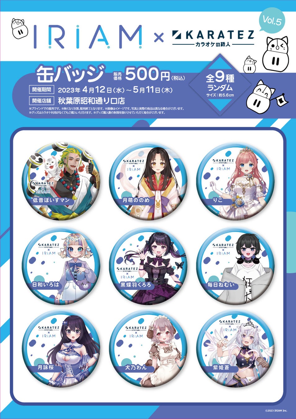 入賞した9名『IRIAM』のVTuberやVライバーたちが、コラボ記念のオリジナル缶バッジに登場します。