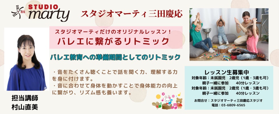 クラス開講に先立ち、スタジオマーティ三田慶応では、リトミックレッスン体験会を実施いたします。
