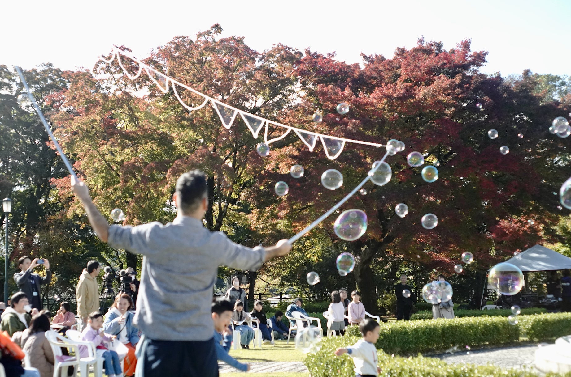 今年は新たな風として、ハーモニーポップグループ「Nagie Lane」が初出演。その効果は絶大で、小山町外や静岡県外からも多数の来場者を呼び込むことに成功しました。若々しいエネルギッシュなパフォーマンスと美しいハーモニーは、会場に新たな魅力を吹き込みました。また、毎年恒例のベテラン歌手 矢沢小吉さんのステージでは、円熟した歌声と観客を巻き込むパフォーマンスで、会場全体を一体感で包み込みました。その他、こじこじ(シャボン玉パフォーマンス)など、バラエティ豊かなステージイベントが、もみじまつりを大いに盛り上げました。