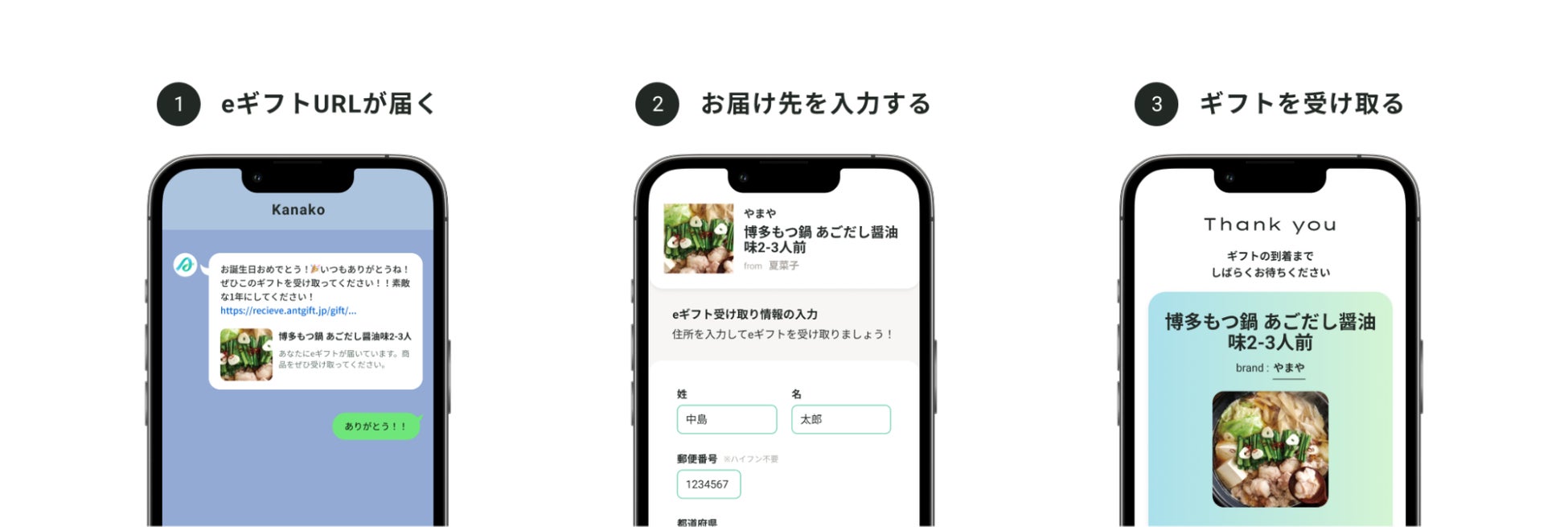 eギフトURLから住所を入力いただくだけで対象商品が届きます