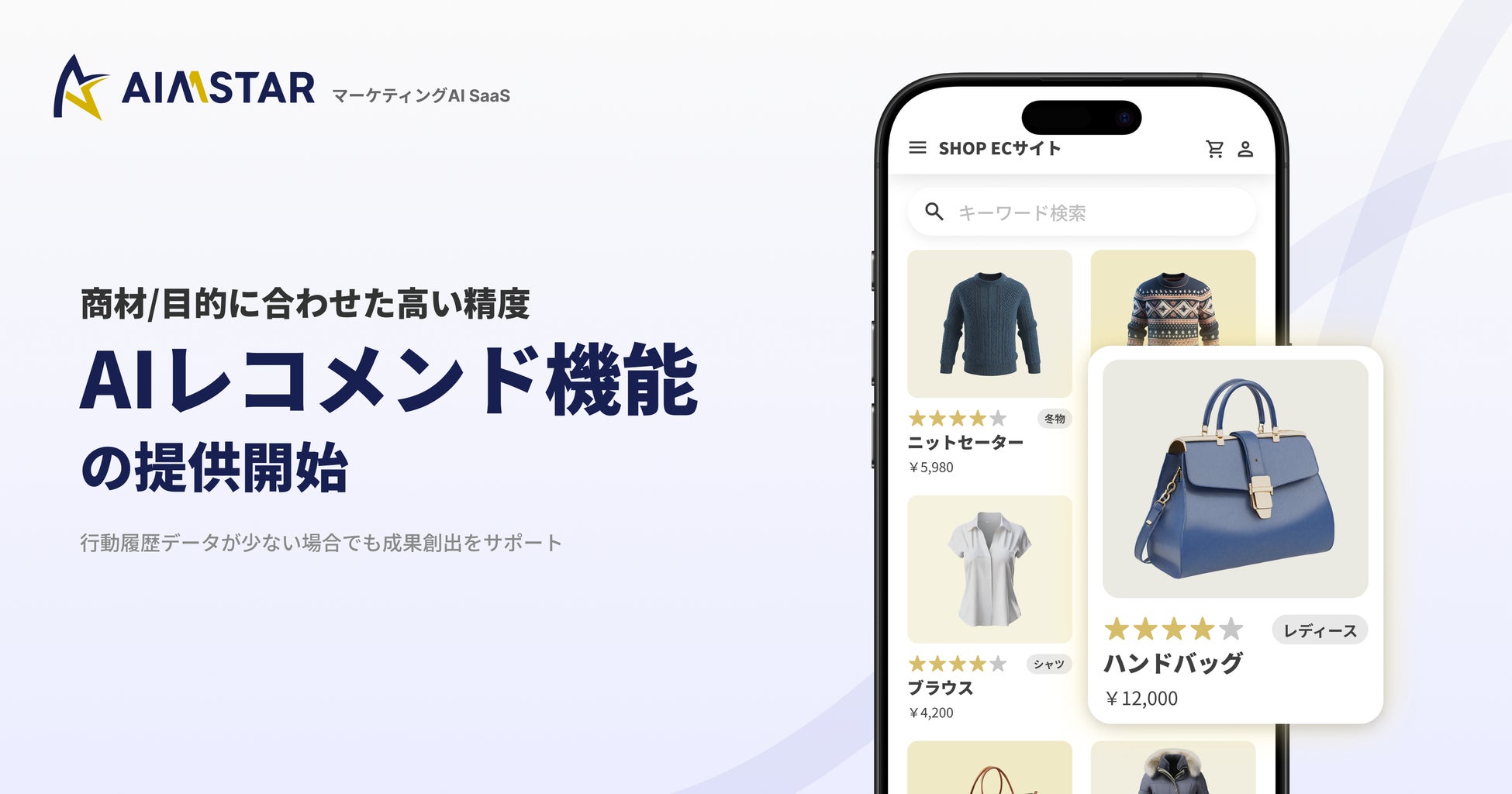 株式会社GROWTH VERSE(本社:東京都豊島区、代表取締役CEO:渡部 知博、代表取締役CTO:南野 充則)はマーケティングAI SaaS「AIMSTAR(エイムスター)」において、AIレコメンド機能の提供を開始いたしました。