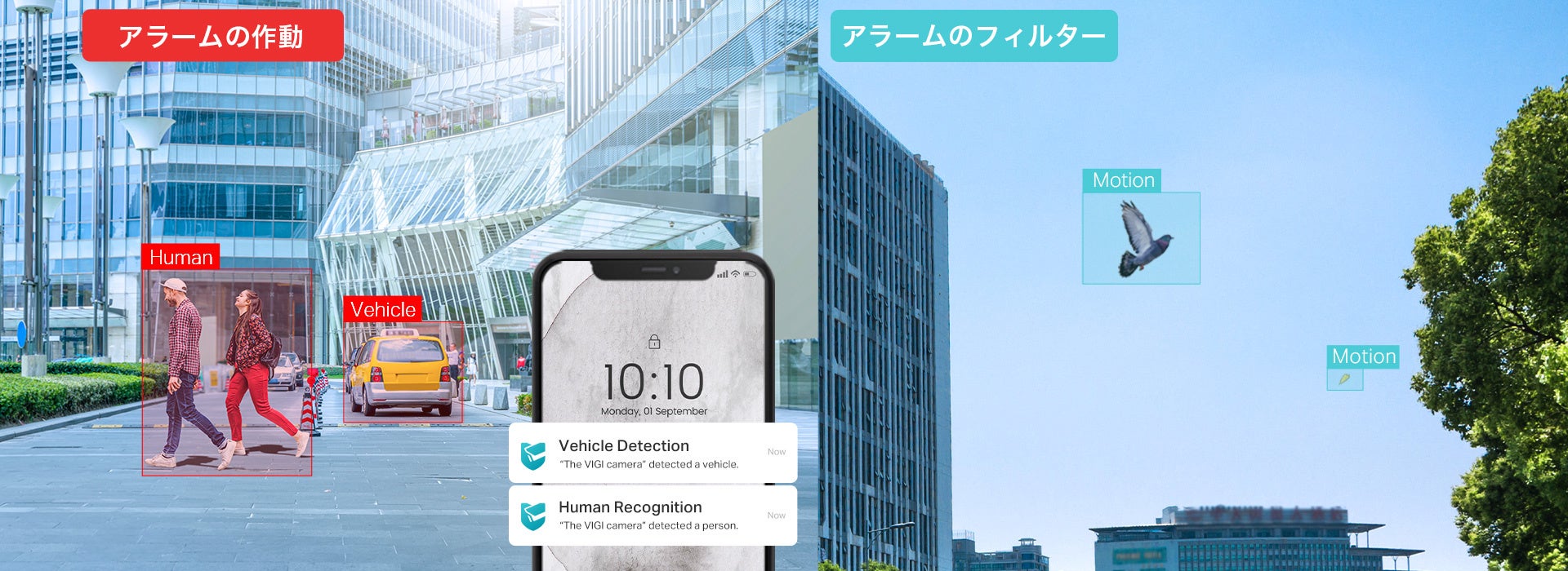 VIGI監視カメラはAI機能を搭載。人物/車両とその他の物体を区別し、イベント発生時にさらに高精度な通知を受け取ることが可能です。
