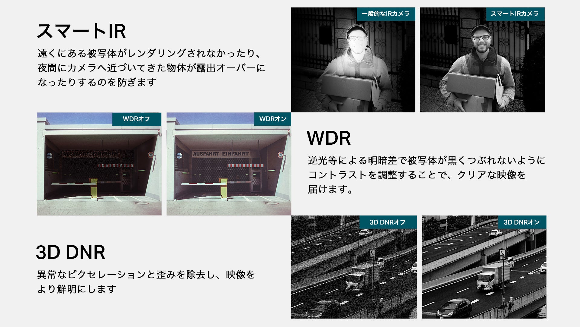 ・IP67防塵・防水性能&IK10耐衝撃性:場所を選ばず監視が可能
