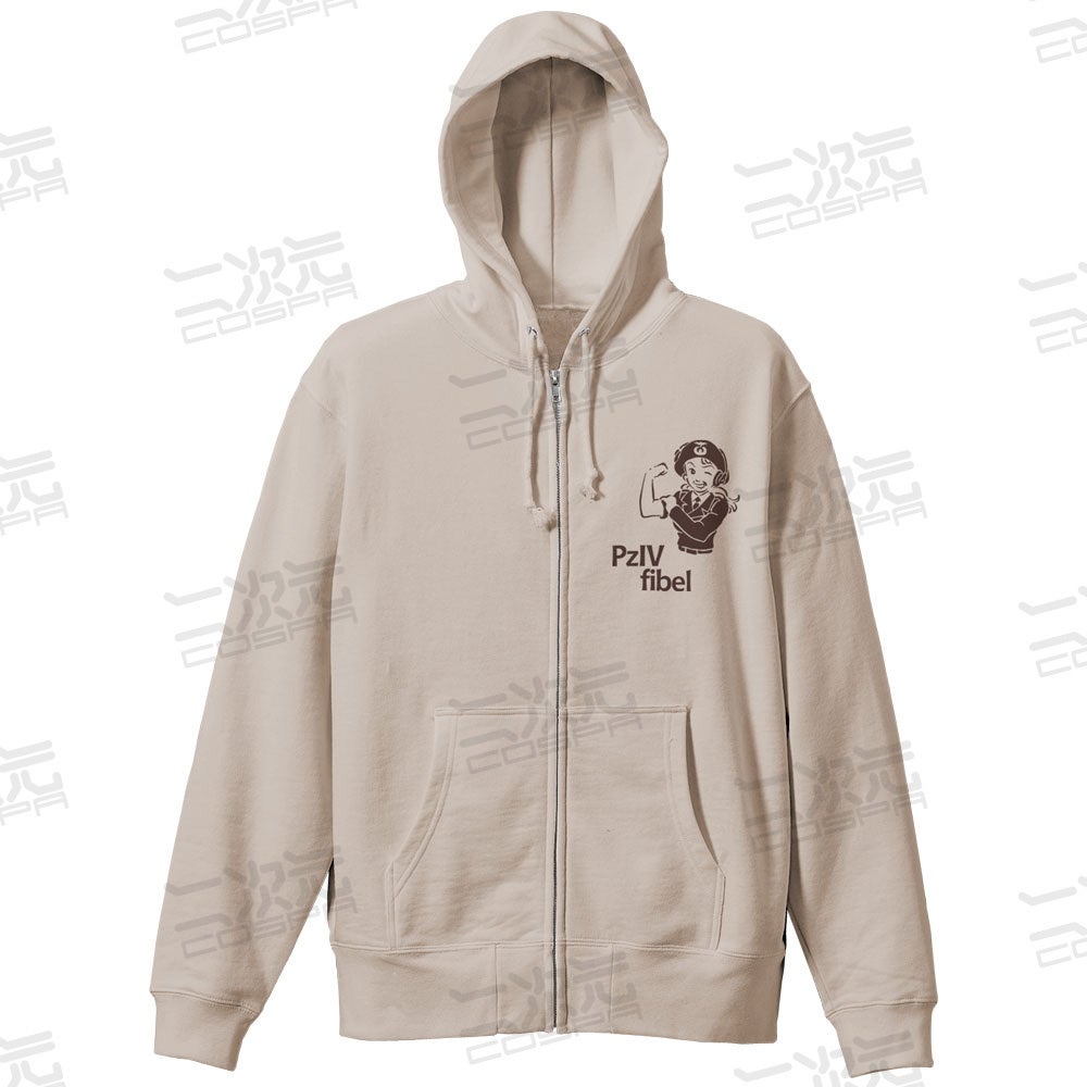 「大洗女子学園」MA-1ジャケット、ファティーグジャケット、「黒森峰女学園」MA-1ジャケットなどミリタリー風の新商品と、劇中に登場したIV号戦車マニュアルの表紙をデザインした「IV号戦車マニュアル」ジップパーカーが二次元コスパから登場。