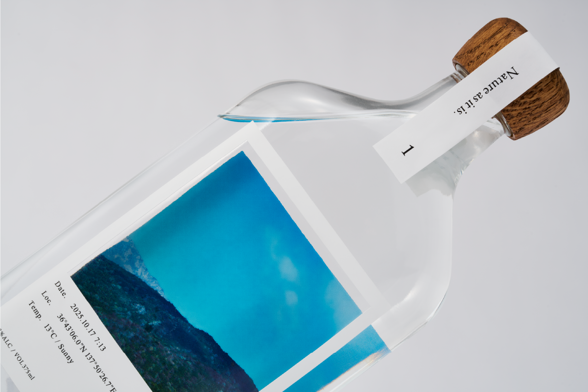 ラベルには、ボタニカルを採取した日付・場所(緯度経度)・気温を記載。その日の森の状態を、ジンという形で「記録」しています。