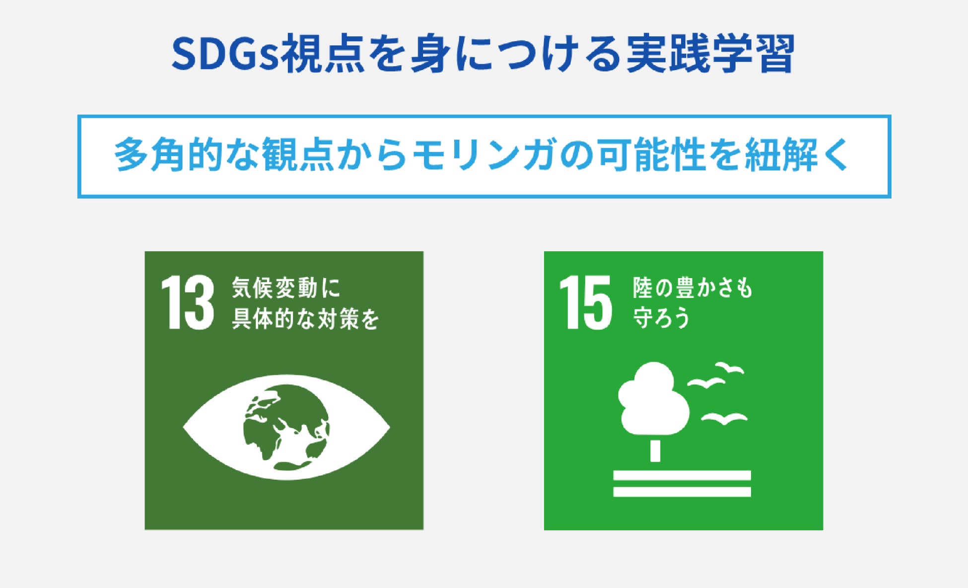本プログラムでは、CO₂の吸収力が一般的な木の約20倍ともいわれる“モリンガ”を題材に、環境問題や地域社会への貢献を実地体験を通じて学ぶ2日間の探究学習を提供。SDGs視点での学びはもちろん、プレゼンテーション・チームワーク・問題解決力を実践的に身につけることが可能です。