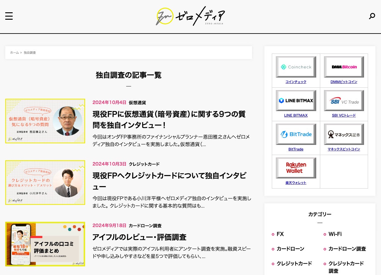 株式会社ゼロアクセル(本社:東京都千代田区、代表取締役:大福裕貴、以下「ゼロアクセル」)は、『ゼロメディア』において、独自調査ページをリニューアルしました。