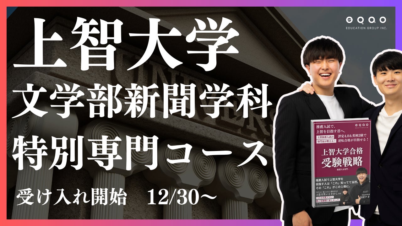 この度、EQAOでは上智大学文学部新聞学科特別専門コースのリリースが決定しました。EQAOでは今年度も上智新聞学科の合格者を複数人排出しております。上智特化型塾のEQAOが受験生を全力サポートします。