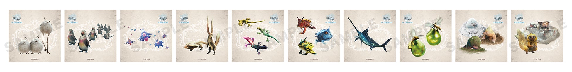 『モンスターハンターワールド:アイスボーン』に登場する環境生物のステッカー(全10種)を1人前のご注文ごとに2枚ランダムでプレゼントいたします。