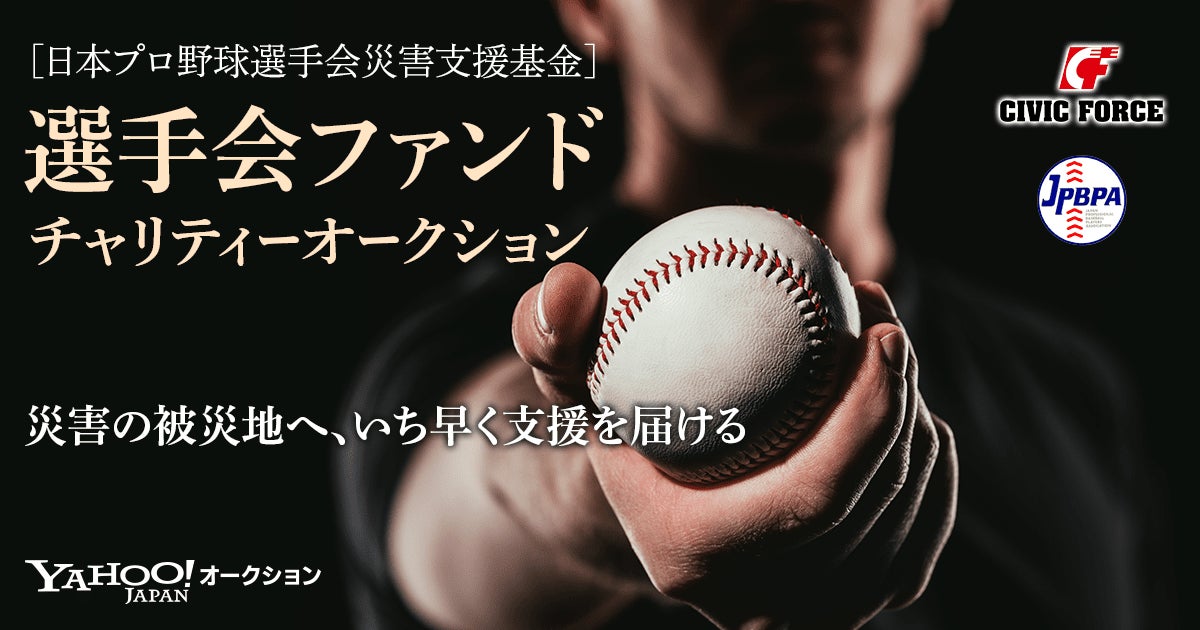 選手会ファンドは、12球団選手が参加する日本プロ野球選手会(会長:會澤翼選手 広島東洋カープ)と公益社団法人Civic Force(代表理事:根木佳織、東京都渋谷区)により、2021年12月に設立されました。大規模な災害が全国各地で増える中、選手による支援や呼びかけを通じて、災害対策を人任せにせず、一人一人が自らや大切な人の命を守る“自助・共助”の考え方を伝えていきます。そして発災時には、緊急対応、復旧・復興など災害支援の各フェーズで貢献します。本オークションの売上は、公益社団法人Civic Forceに寄付され、被災地の復旧・復興や防災・減災のための活動に役立てられます。