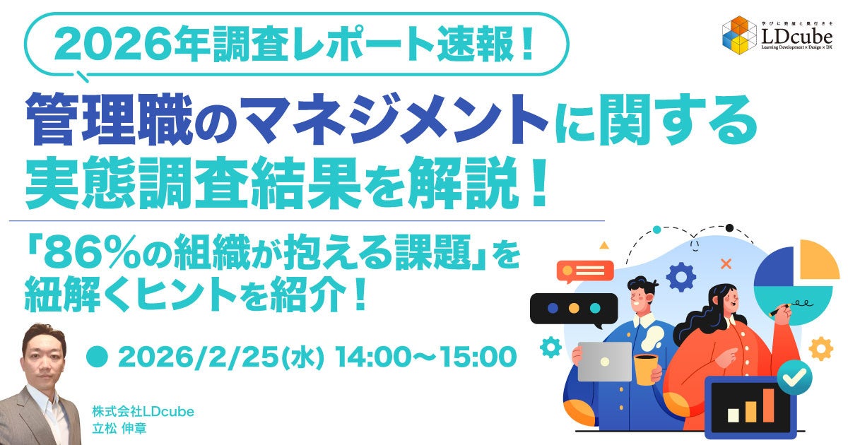 「【2026年調査レポート速報!】管理職のマネジメントに関する実態調査結果を解説!『86%の組織が抱える課題』を紐解くヒントを紹介!」ウェビナーを開催(2月25日14:00〜)株式会社LDcube