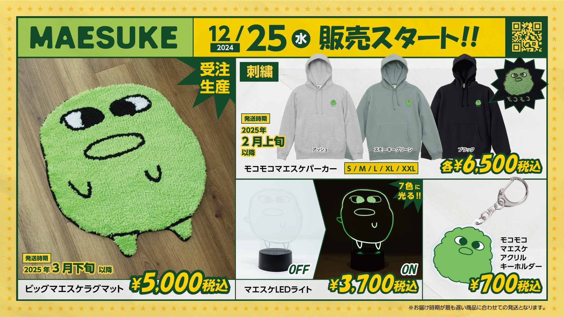 オフィシャルオンラインストア『MAESUKE OFFICIAL STORE』にて、12月25日よりオリジナルグッズを販売開始いたしました!