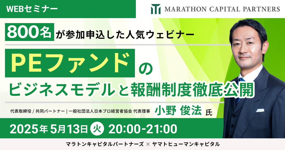 【5/13開催】PEファンドのビジネスモデルと報酬制度徹底公開 | マラトンキャピタルパートナーズ × ヤマトヒューマンキャピタル