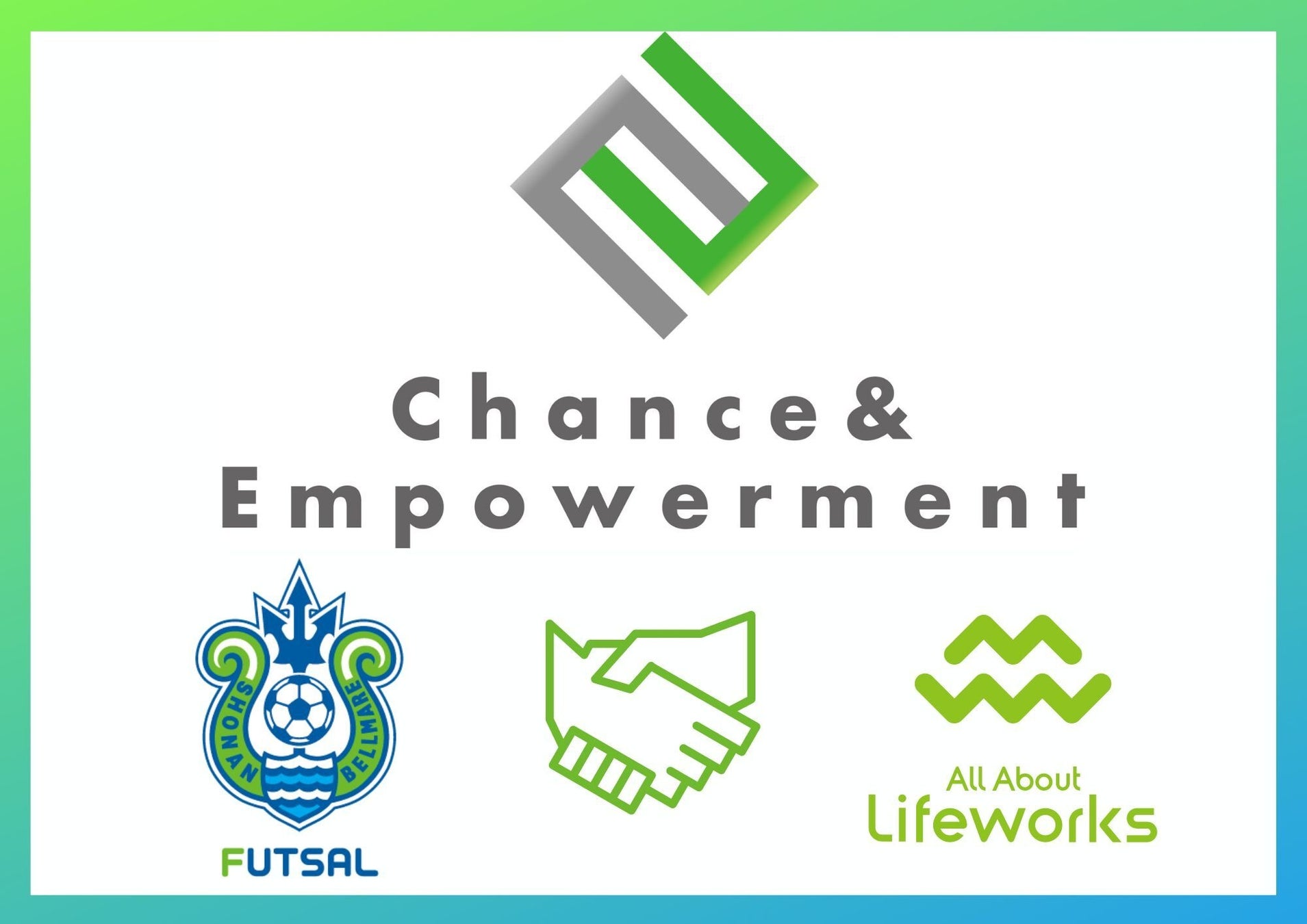 「Chance & Empowerment パートナー」は、湘南ベルマーレフットサルクラブと共に取り組む、スポーツ振興・普及・発展、及び SDGs(Sustainable Development Goals/持続可能な開発目標)の達成などに向けた、豊かな地域づくりへ寄与するためのパートナー制度です。