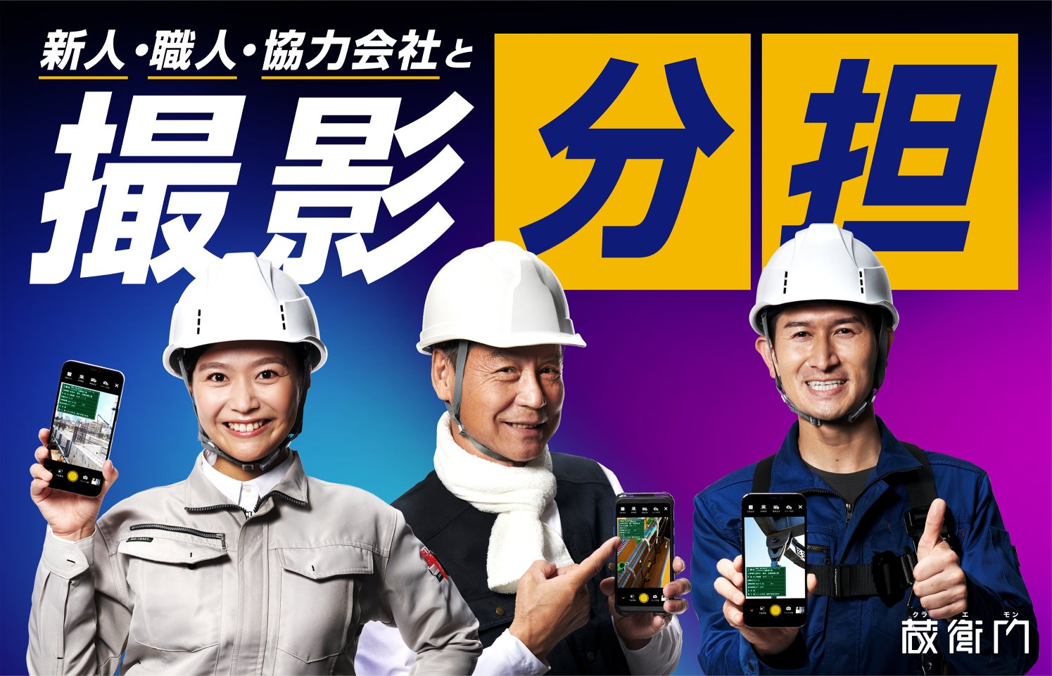 このような建設業界の状況の中、「蔵衛門」は、現場監督の負担を軽減するために、『蔵衛門Pix』で新人、協力会社、職人との工事写真の撮影を分担する提案をします。