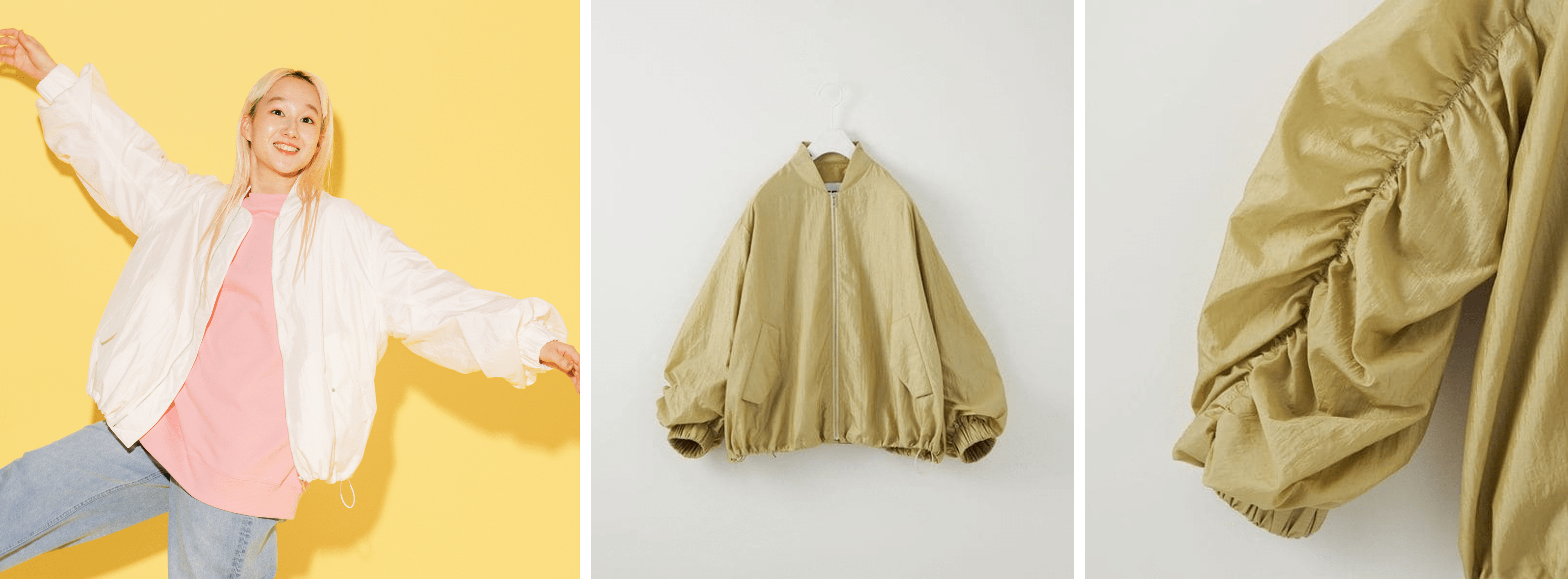 ギャザーたっぷりのボリュームスリーブがポイントのビッグブルゾン。