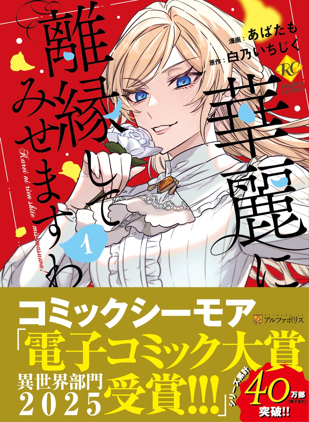 電子書籍ストア大手のコミックシーモア(運営:エヌ・ティ・ティ・ソルマーレ株式会社)にて開催された『みんなが選ぶ!! 電子コミック大賞2025』において、レジーナCOMICS「華麗に離縁してみせますわ!」が【異世界部門賞】を受賞いたしました。