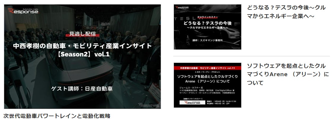 レスポンスでは、自動車産業の最新情報に興味関心を持つ読者のために各種のコンテンツをご用意しています。