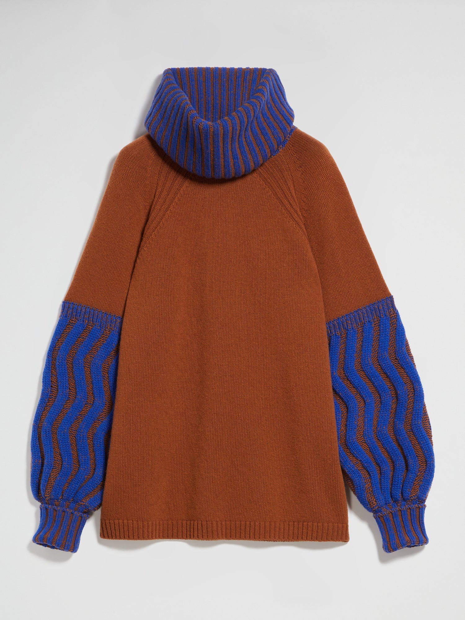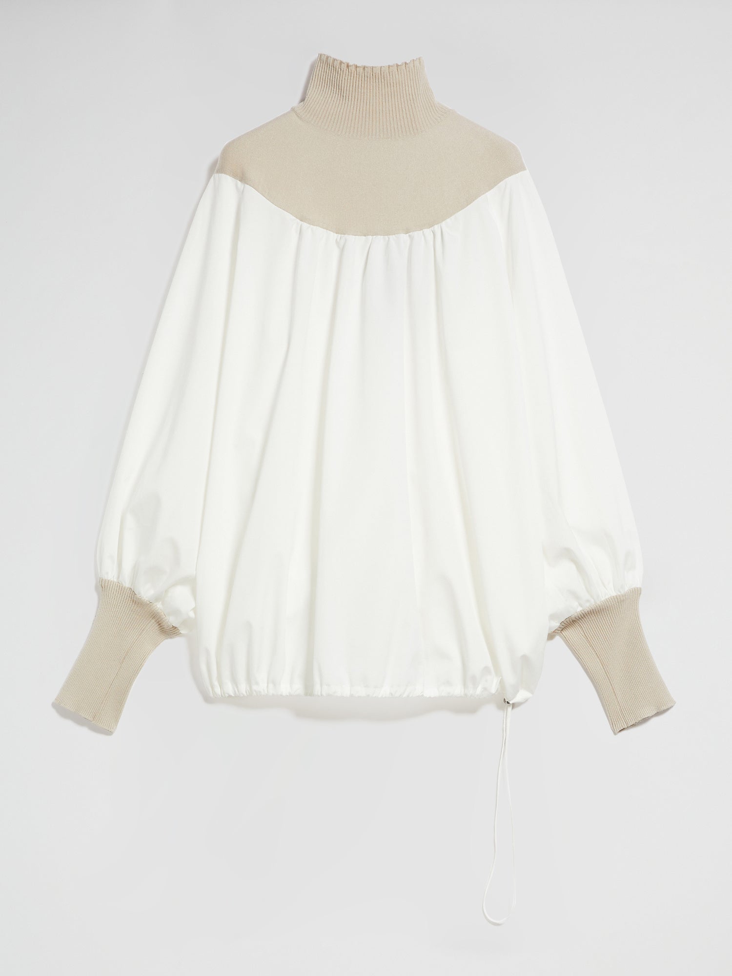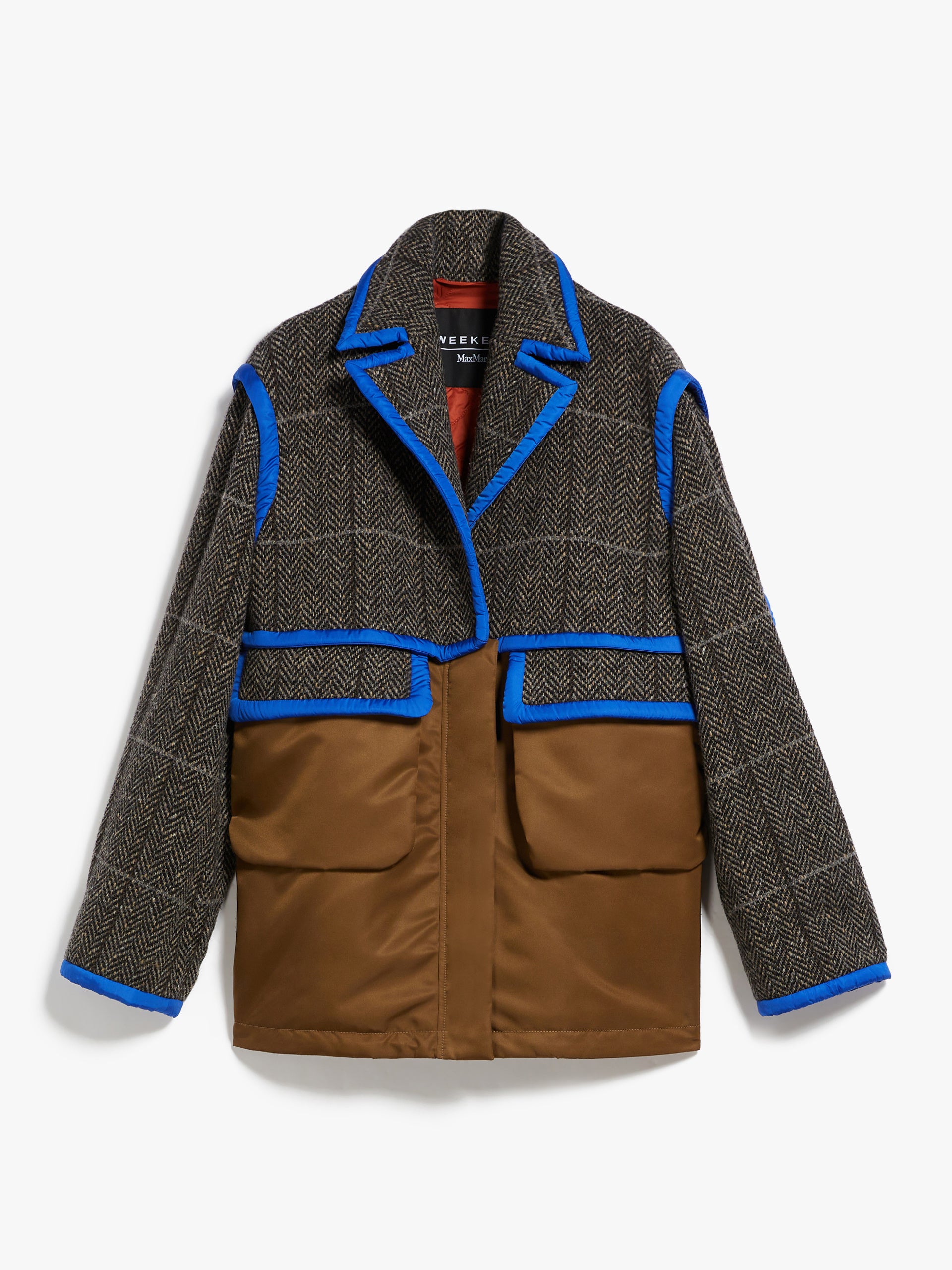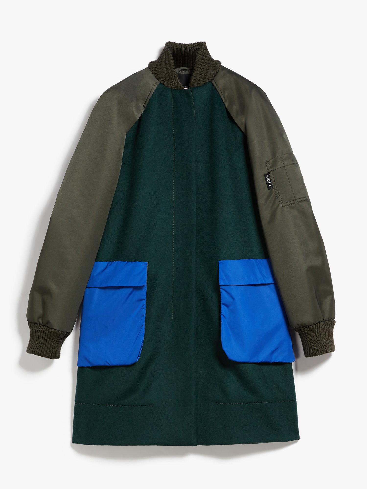 象徴的なアイテムであるコートは、ウルキオラの「ハイブリッド化」を最も明確に体現しています。コクーンシェイプを中心としたウィークエンド マックスマーラの定番シルエットを再解釈したもので、伝統的なウールやリブニットにテクニカルナイロンを組み合わせ、マット、光沢、反射などの効果をプラスしています。「HABITO」は、ウルキオラのルーツへの敬意を表し、カラフルな裾、ボリューム感、折り目など、スペインの民族衣装の要素も取り入れています。