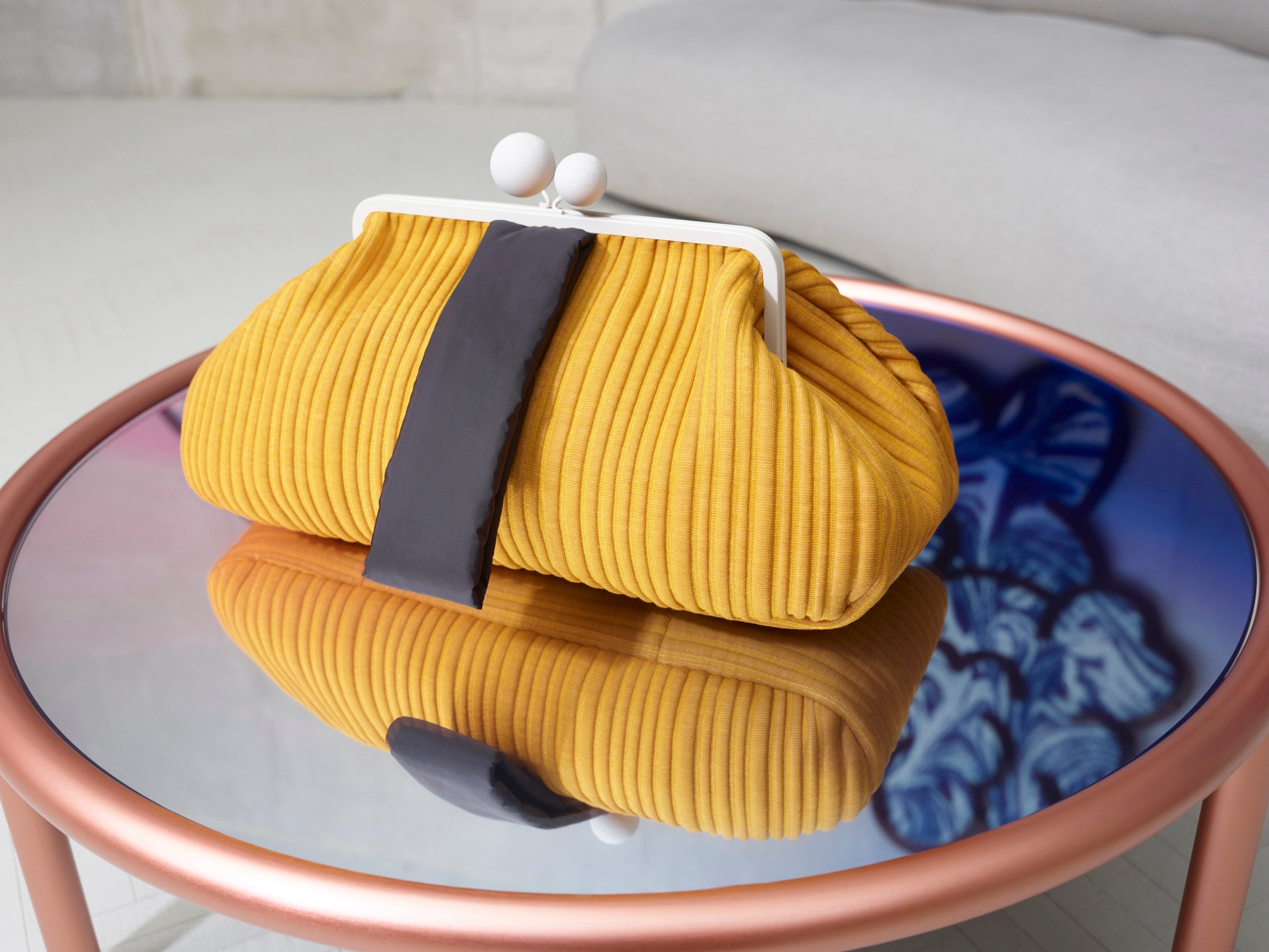 アイコニックなデザインを再解釈したパスティチーノは、パッドを入れた縦のパターンで立体感を出し、大きめにデザインされた留め金が大胆な印象を演出しています。