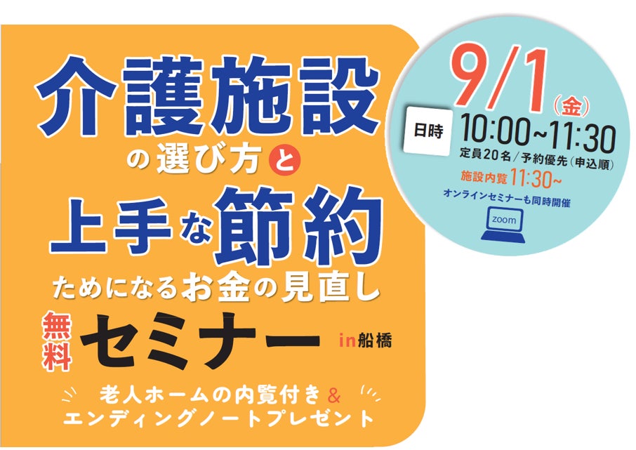 必⾒︕介護施設の選び⽅と上⼿な節約無料セミナー 第4回まちの【無料】介護相談会を船橋で開催します