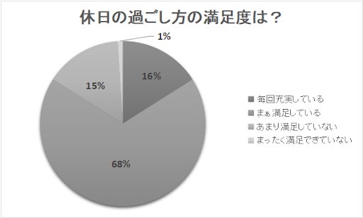 そして、休日の過ごし方の満足度も聞いてみました。結果は、半数以上の68%の人が「まぁ満足している」と回答したのです。
