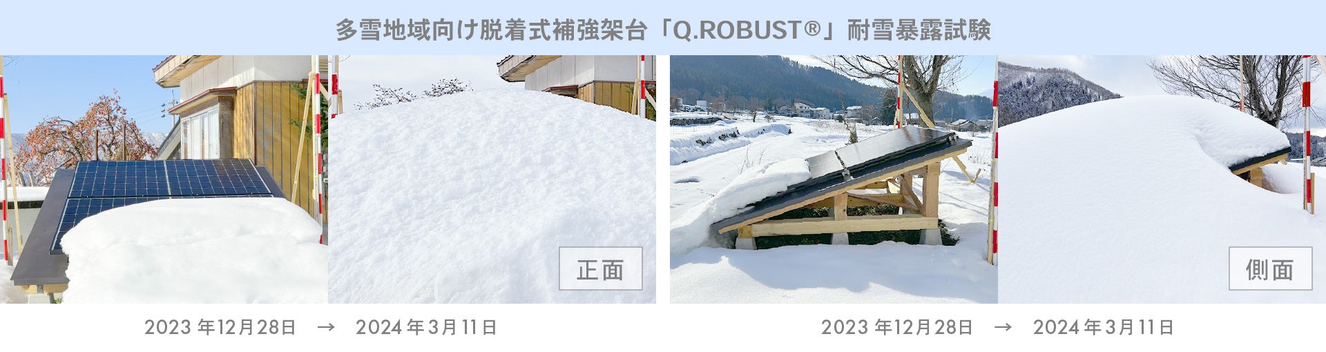 多雪地域向け脱着式補強架台「Q.ROBUST®」の耐雪暴露試験を実施し、公表値を大幅に上回る積雪量への有用性を確認