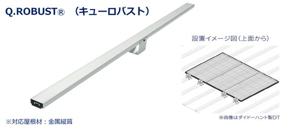 多雪地域向け脱着式補強架台「Q.ROBUST®(キューロバスト)」は、「掴み金具工法」を採用し、垂直積雪量200cm以上の多雪地域でも屋根に穴をあけずに太陽光発電システムの設置が可能です。屋根の防水性や耐久性を損なうリスクを最小限に抑えるだけでなく、固定可能範囲内で設置箇所を自在に変更できるため、縦ハゼの位置に影響されません。