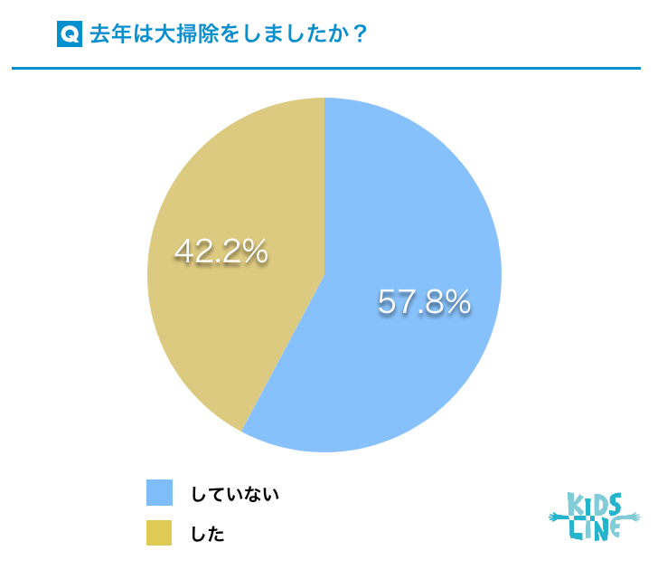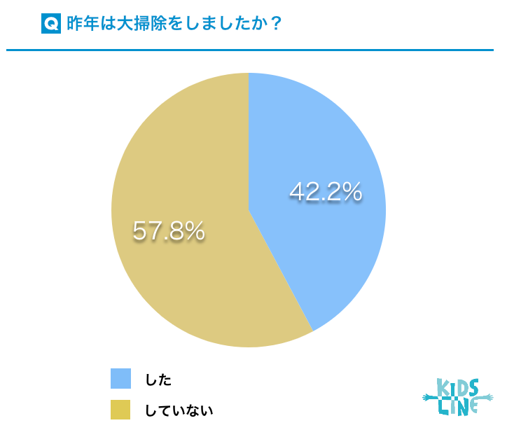 昨年2021年11月に実施したアンケートで「今年は大掃除をする予定ですか」の質問に対して、63.8%の人が「する」と回答していましたが、2022年11月に実施したアンケートで、実際に昨年大掃除を実施した人は、42.2%に留まりました。同じ回答者ではないためあくまで参考値になりますが、結果として様々な事情で大掃除をすることなく、あるいはできずに年末を過ごす傾向があると考えられます。