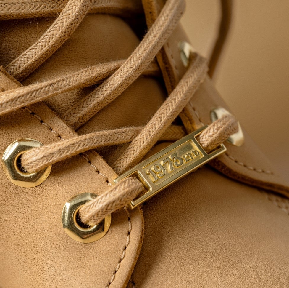 そして、 2023年でヒップホップも50周年を迎えたことに敬意を表し、「バター コレクション」は誕生しました。コレクションは、「イエローブーツ」とハイキングブーツ「ユーロハイカー」、ボートシューズ「スリーアイ クラシックラグ」、犬ぞり用のブーツにルーツを持つ「スーパーブーツ」(メンズ)、「イエローブーツ」の性能はそのままにシャフトを2倍以上にデザインした「14インチブーツ」(レディース)の5モデルを用意。どれもオリジナルのシルエットはそのままに、アッパーに高級バターを彷彿とさせるカラーのヌバックを採用し、シューレースをアッパーと同色としたほか、シューレースに“1973 LTD”の文字が刻印されたゴールドチャームと特別仕様のゴールドペンダントをあしらい、アイレットやフックも高級感のあるゴールドにアップデートしています。