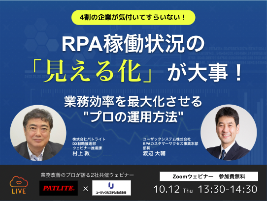 【10/12(木)13:30~】RPA稼働状況の「見える化」が大事!業務効率を最大化させる”プロの運用方法”オンラインセミナー開催