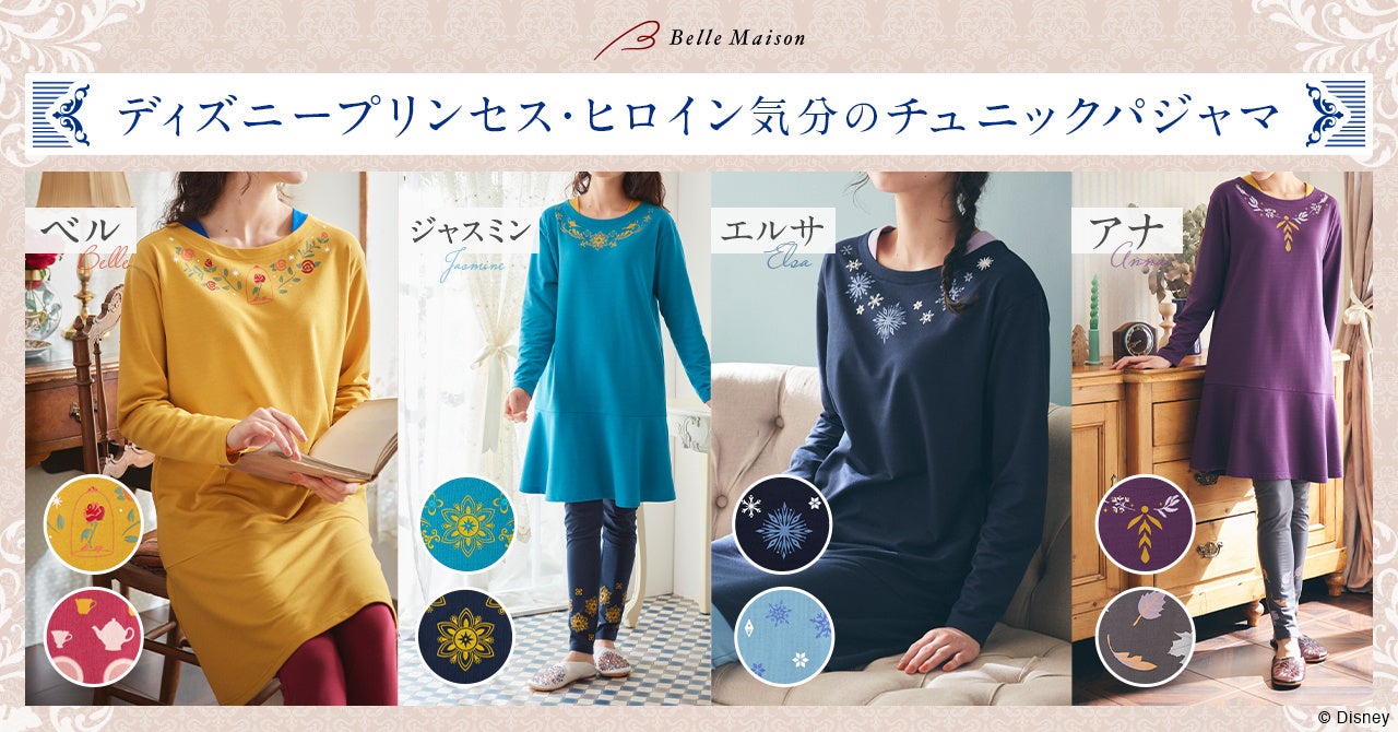 大人女性のくつろぎタイムに ディズニープリンセス・ヒロイン気分で過ごせるチュニックパジャマ 9月22日(金)より販売開始