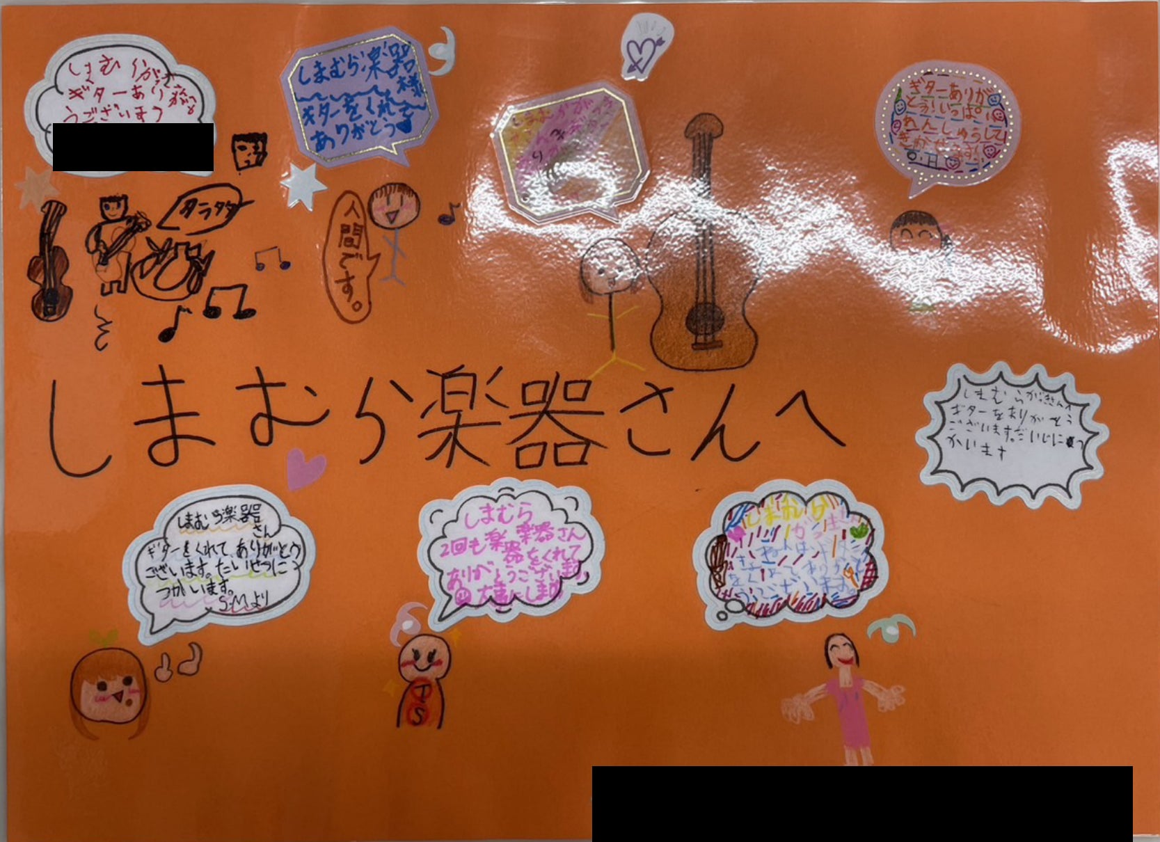 楽器贈呈後に児童の皆さんから届いた寄せ書きやお手紙をご紹介します。
