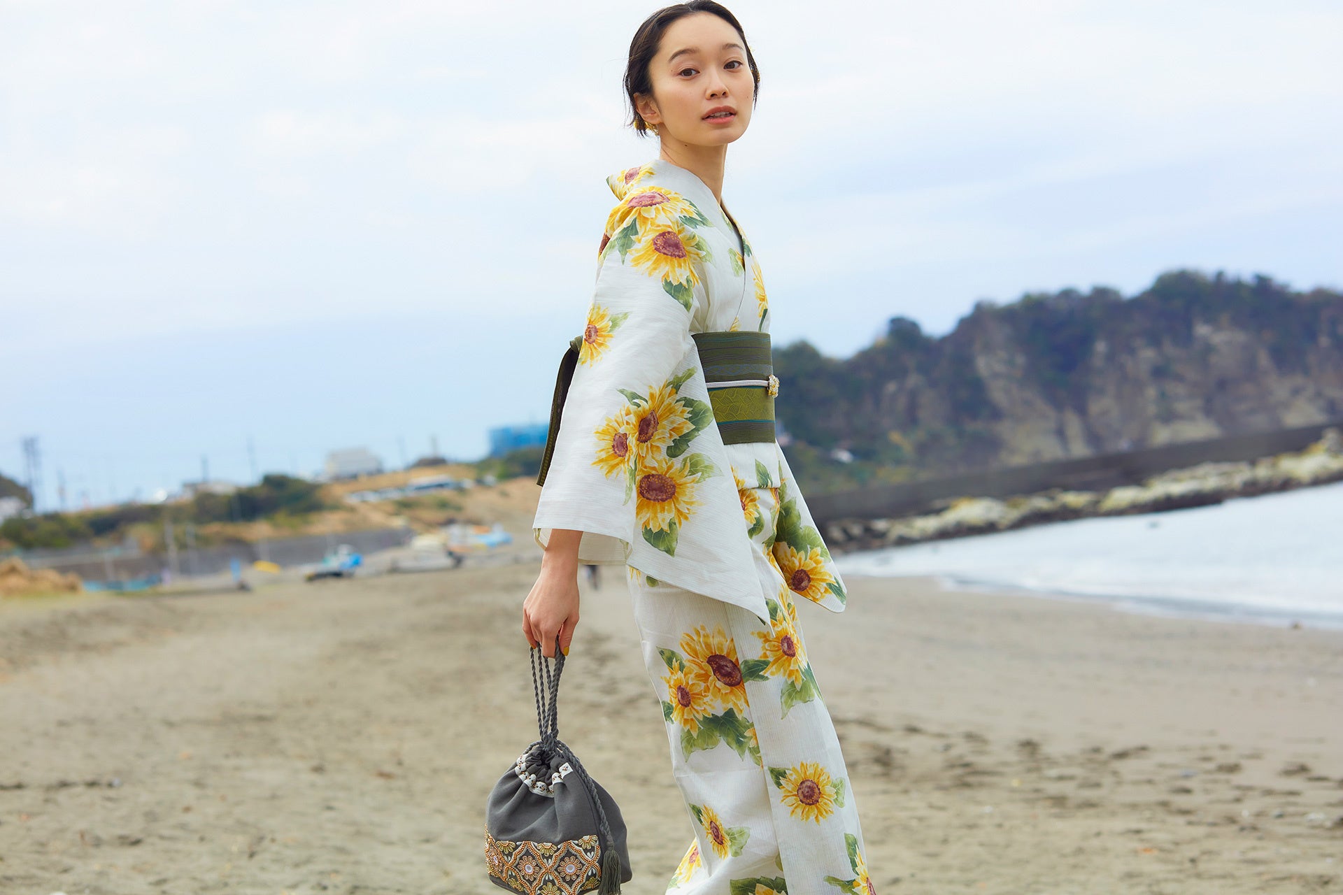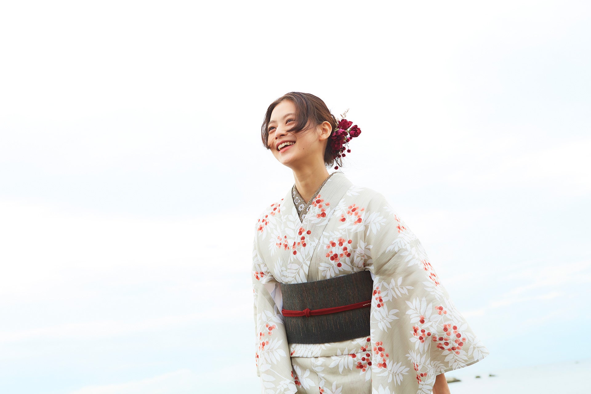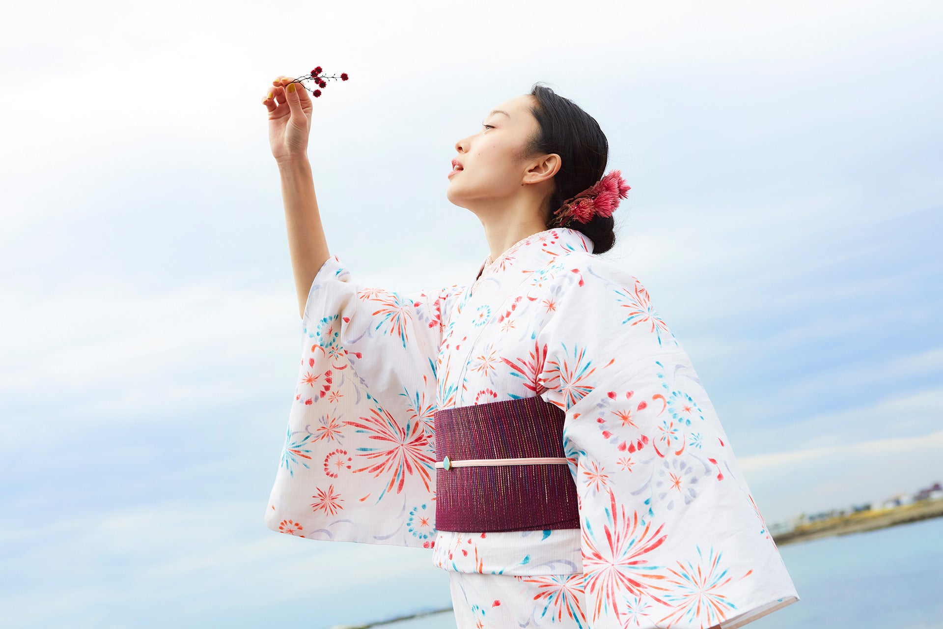 ゆかたの染めは、石川県加賀市にてオートスクリーンにて捺染し、豊かな色彩を表現しています。また、 きものやまとが大切にしている「そのひとの持つ力を存分に引き出す」衣服として、今年も反物からご自身のサイズでお仕立てするマイサイズでの受注を展開。自分のサイズでお仕立てすることで、より美しい着姿で長くご愛用いただける1枚となります。