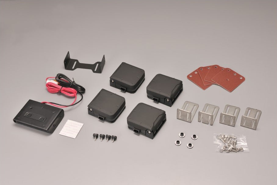 ■内容物(数量):センサー右ヒンジ(2)、センサー左ヒンジ(2)、インジケーター(1)、ステー(1)、ハーネスA・B・C・D、取り付けネジ(4)等