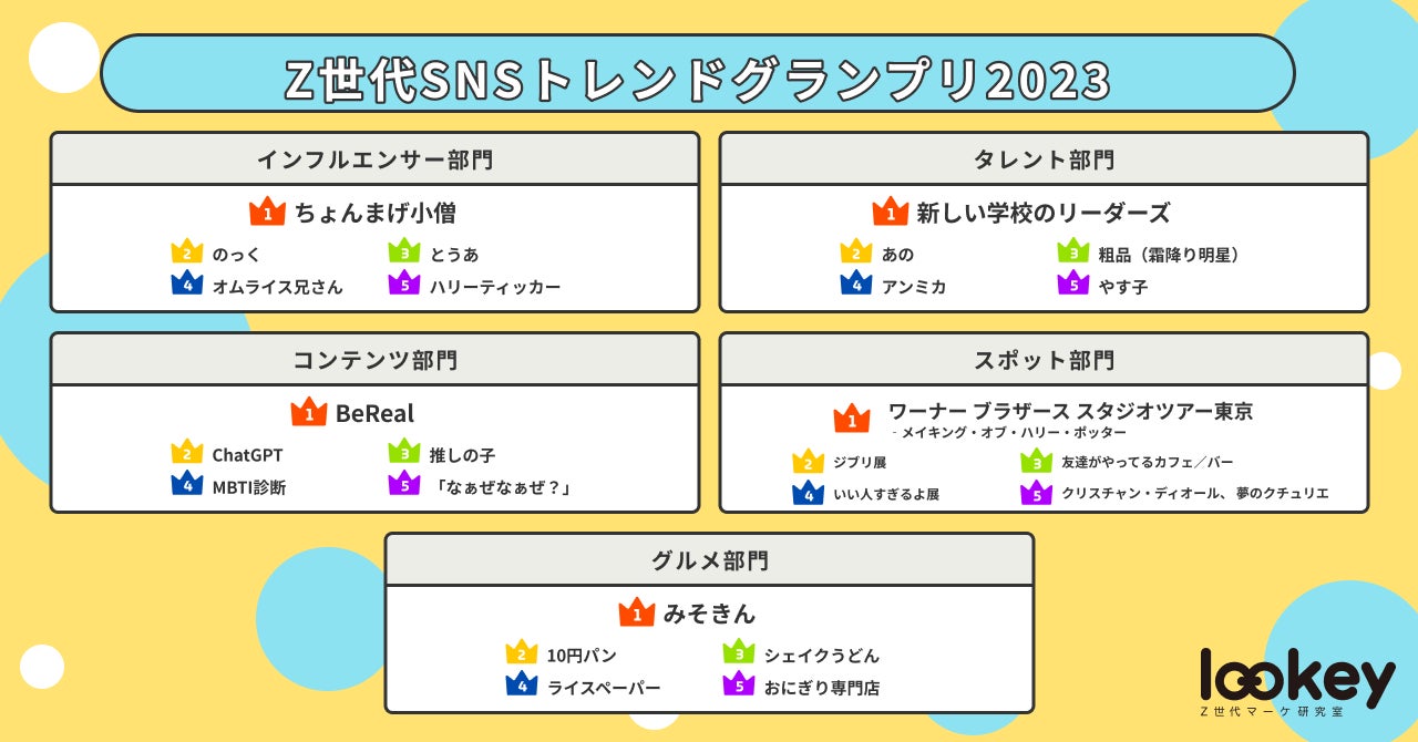 【Z世代SNSトレンドグランプリ2023】Z世代マーケ研究室「lookey(ルーキー)」が今年のZ世代SNSトレンドグランプリを発表