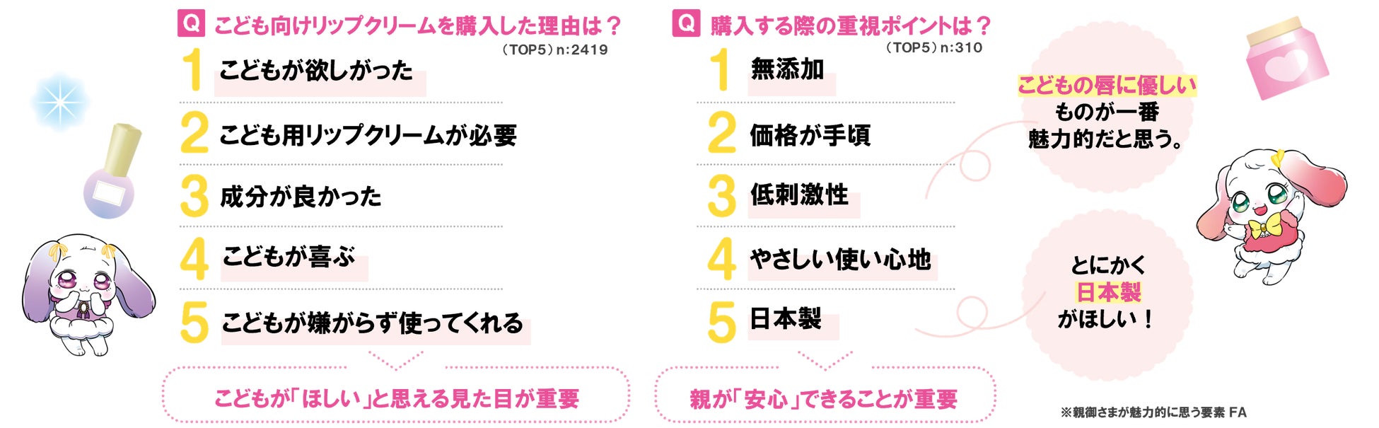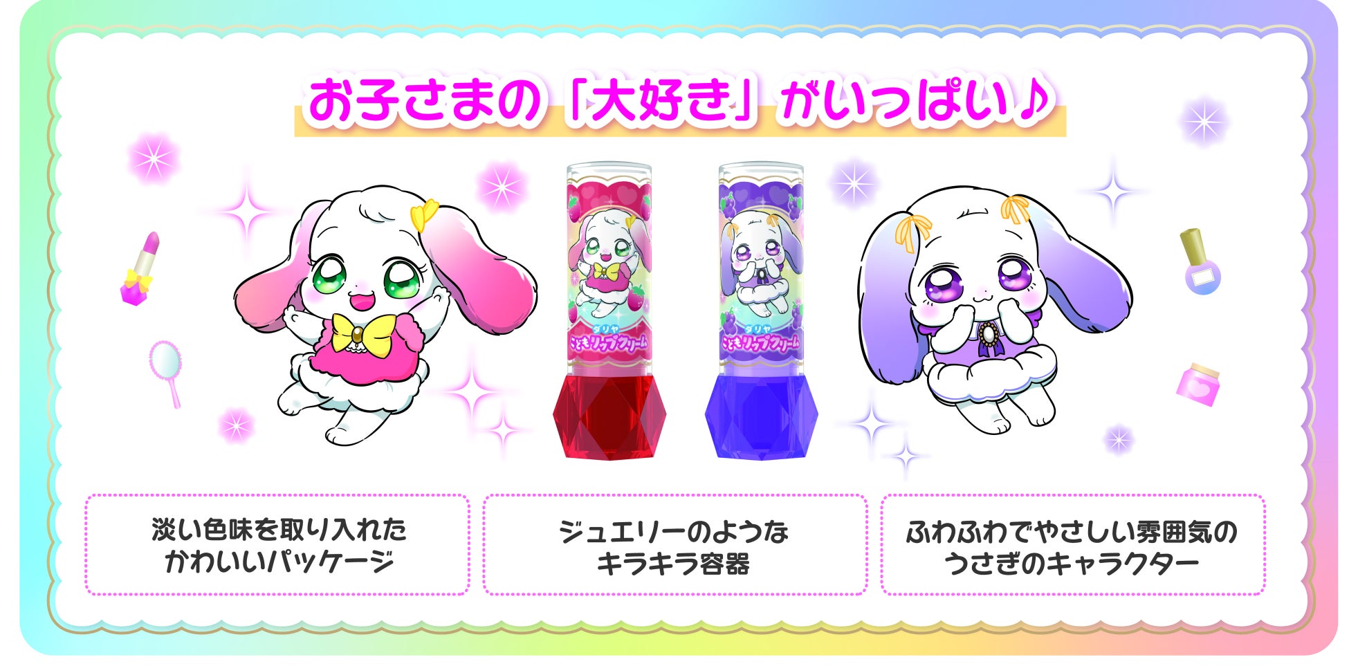 こども向けトレンドの手法である、手描きのような柔らかい線や光を参考に描き下ろしました。“こどものほしい”と“親の安心”をさらに高めたこどもリップクリームを、ぜひお試しください。