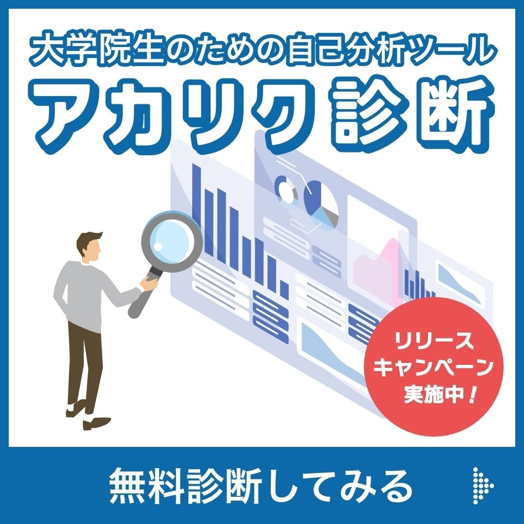 技術者・研究者のキャリア支援に特化した事業を15年以上にわたって続けている株式会社アカリク(本社:東京都渋谷区、代表取締役:山田諒、以下 アカリク)は、研究に取り組む大学院生のための自己分析ツール「アカリク診断」を提供開始いたします。