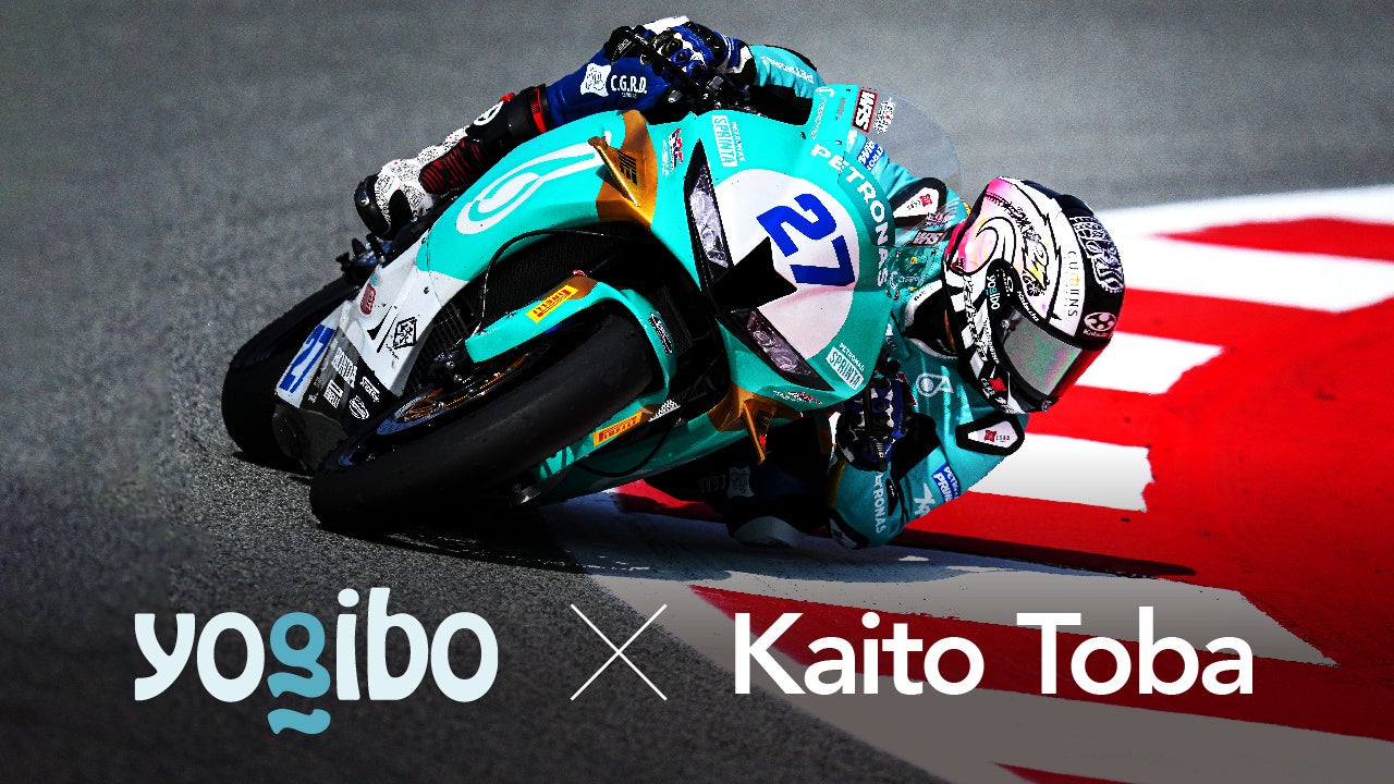 鳥羽選⼿は、2014年のシェル・アドバンス・アジアタレントカップで日本人として初優勝を飾り、翌年からはMotoGP・Moto3クラスに活躍の場を移しています。2019年には、世界選手権Moto3クラスで日本人初優勝の快挙を遂げ、以降毎年世界選手権Moto3クラスで表彰台を獲得しています。世界を転戦し、これからますます活躍する鳥羽選⼿のコンディションを、Yogiboがオフ時間のリラックス面も含めてサポートしていきたいと考えています。