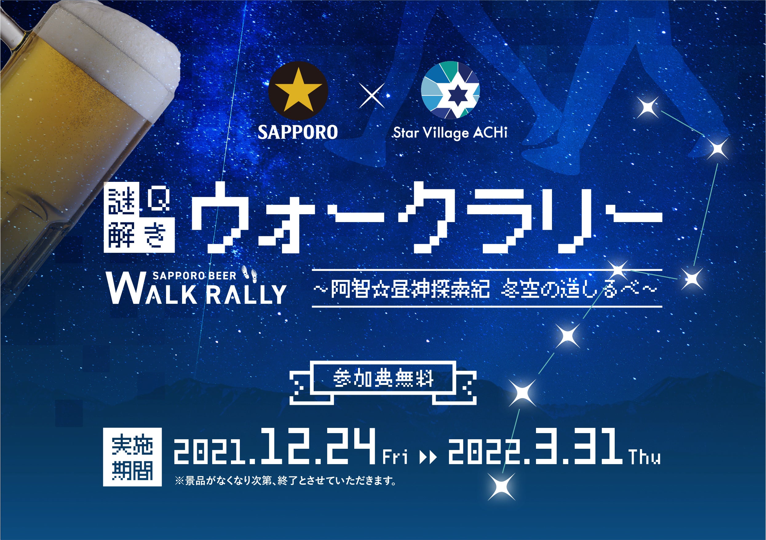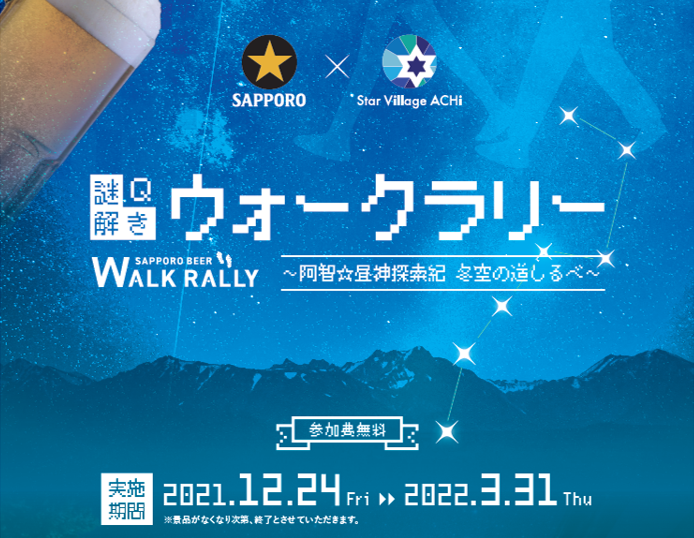 【日本一の星空】長野県阿智村 Star Village ACHI × SAPPORO 謎解きウォークラリー【阿智☆昼神探索紀 ~冬空の道しるべ~】開催