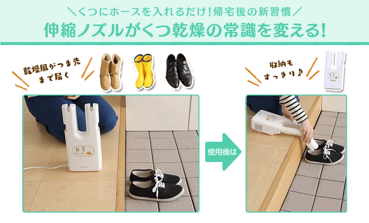 ■伸縮ノズルがくつ乾燥の常識を変える!