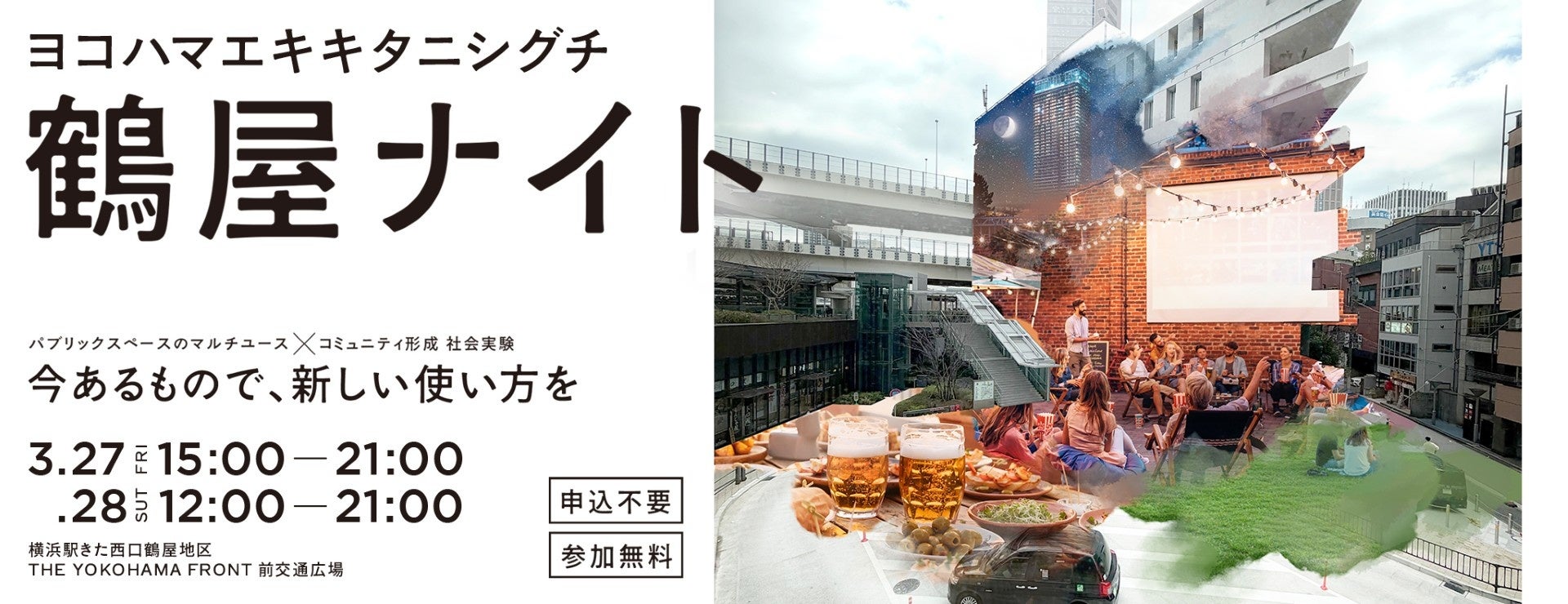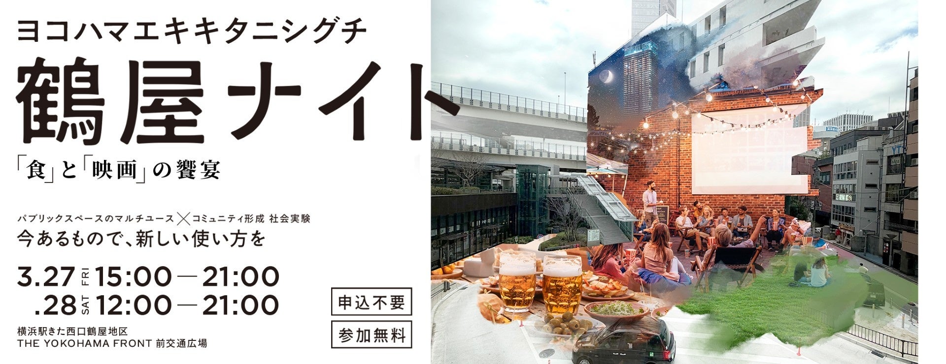 横浜駅きた西口エリアに位置する鶴屋地区でのコミュニティ形成を図ること鶴屋町エリアの交通広場や道路空間などのパブリックスペースをマルチユースに活用していくこと鶴屋町の魅力である「食」と、新たなコンテンツとして「映画(アート)」を軸に、鶴屋町に新たな来訪者を誘引し、回遊を促すこと